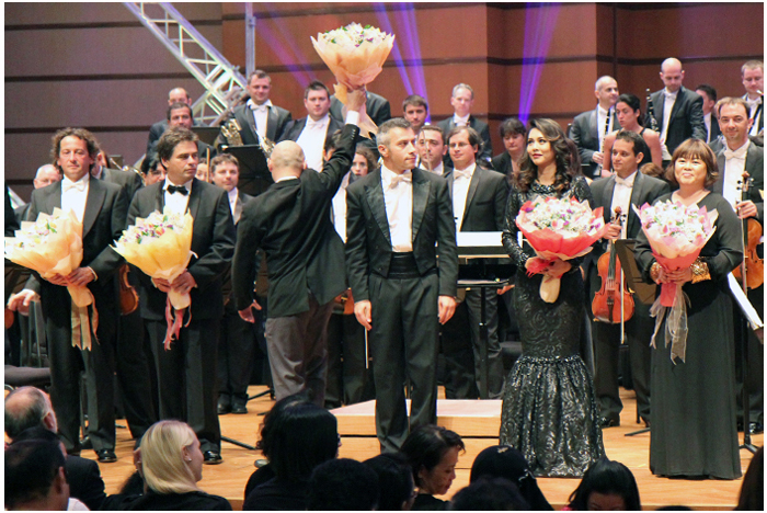 Cei peste 1000 de participanţi la summit au aplaudat entuziast Orchestra Naţională Radio care a dus o parte din spiritul autentic românesc pe tarâm asiatic, interpretând două creaţii româneşti, veritabile „cărţi de vizită” ale culturii noastre, Rapsodia română nr. 1 – celebra lucrare a lui Enescu – şi Ciocârlia (compusă de Angheluş Dinicu şi devenită celebră în interpretarea şi aranjamentul nepotului său, violonistul Grigoraş Dinicu). Pe lângă acestea, spectatorii au ascultat şi lucrări din repertoriul clasic internaţional, ca Suită din Lacul lebedelor (Ceaikovski), Burlesca pentru pian şi orchestră, semnată de Richard Strauss sau Melodii lăutăreşti, de Pablo de Sarasate.