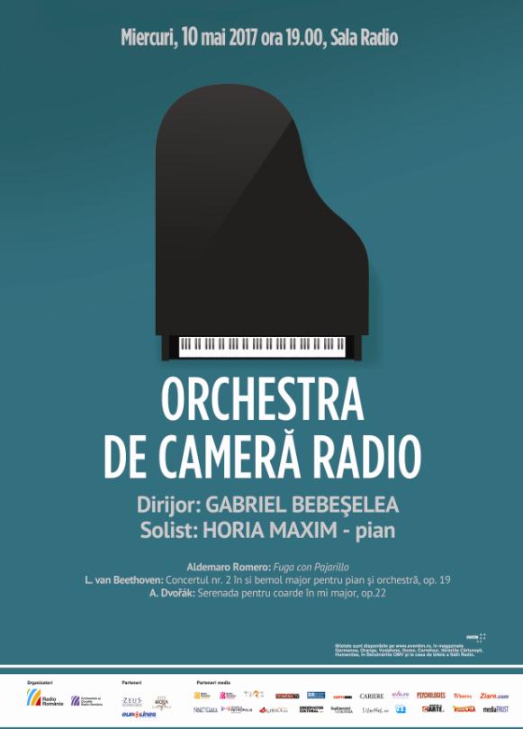 Pianistul Horia Maxim, considerat unul dintre pianiştii de referinţă ai generaţiei sale, va concerta la Sala Radio miercuri, 10 mai, ora 19:00, alături de Orchestra de Cameră Radio, la pupitrul căreia se va afla dirijorul Gabriel Bebeşelea. Programul serii va debuta pe ritmuri de muzică latino-americană, cu piesa Fuga con Pajarillo, semnată de compozitorul venezuelean Aldemaro Romero. Vor urma Concertul nr. 2 în si bemol major pentru pian şi orchestră, op. 19 de L. van Beethoven şi Serenada pentru coarde în mi major, op. 22, de A. Dvořák.