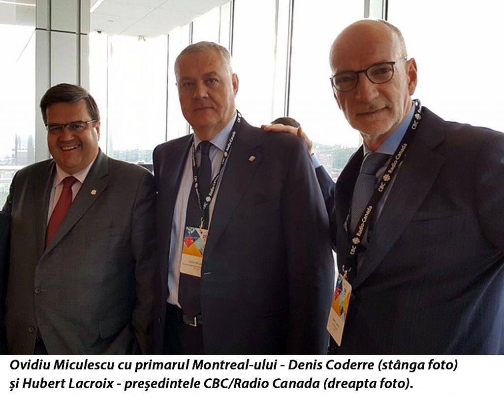 Foto3 PBI: Ovidiu Miculescu cu primarul Montreal-ului – Denis Coderre (stânga foto) şi Hubert Lacroix – preşedintele CBC/Radio Canada (dreapta foto).