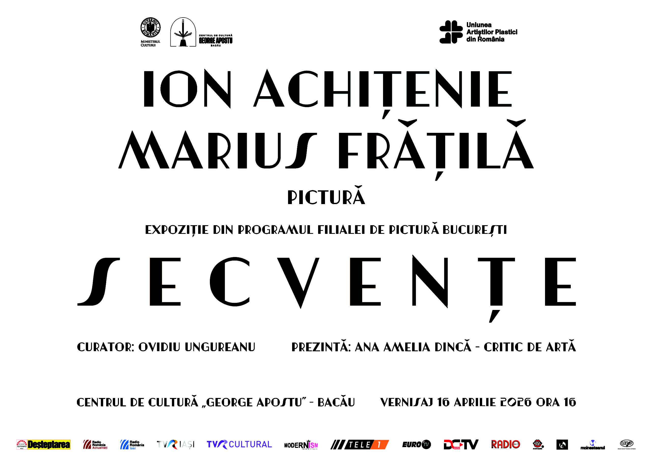 Artiștii Ion Achițenie și Marius Frățilă, membri UAP – filiala București, sunt prezenți în expoziția „Secvențe”, organizată de Centrul de Cultură „George Apostu” Bacău în parteneriat cu Uniunea Artiștilor Plastici din România.