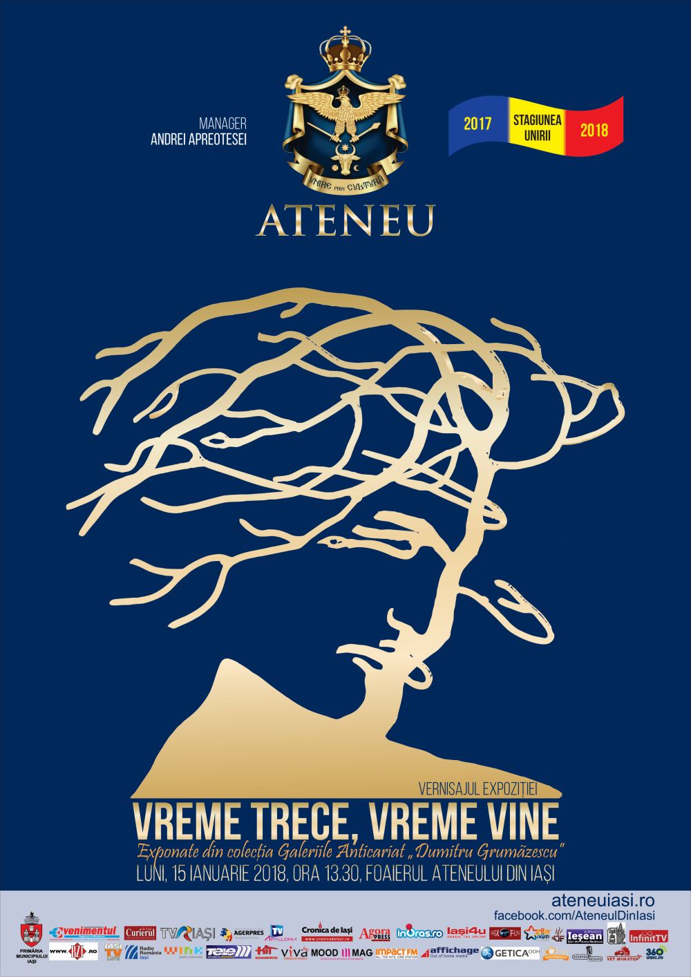 Vernisajul expoziției are loc, luni 15 ianuarie 2018, ora 13.30, în foaierul Ateneului din Iași, în prezența anticarului Dumitru Grumăzescu.