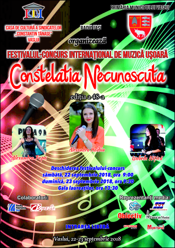 (VIDEO-LIVE) Festivalul–Concurs Internațional de Muzică Ușoară CONSTELAŢIA NECUNOSCUTĂ – 22-23 septembrie 2018, VASLUI