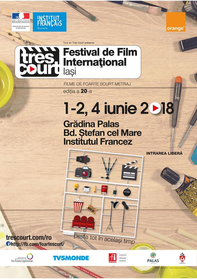 Institutul francez din Iaşi vă invită vineri, 1 iunie, începând cu ora 22.00, în Parcul Palas, sâmbătă, 2 iunie, ora 21.00, pe bulevardul Ştefan cel Mare, şi luni, 4 iunie, ora 16.00, la Institutul Francez, la o nouă ediţie a Festivalului internaţional de film de foarte scurt metraj, unde veţi descoperi cele mai bune şi mai scurte producţii cinematografice recente din întreaga lume !