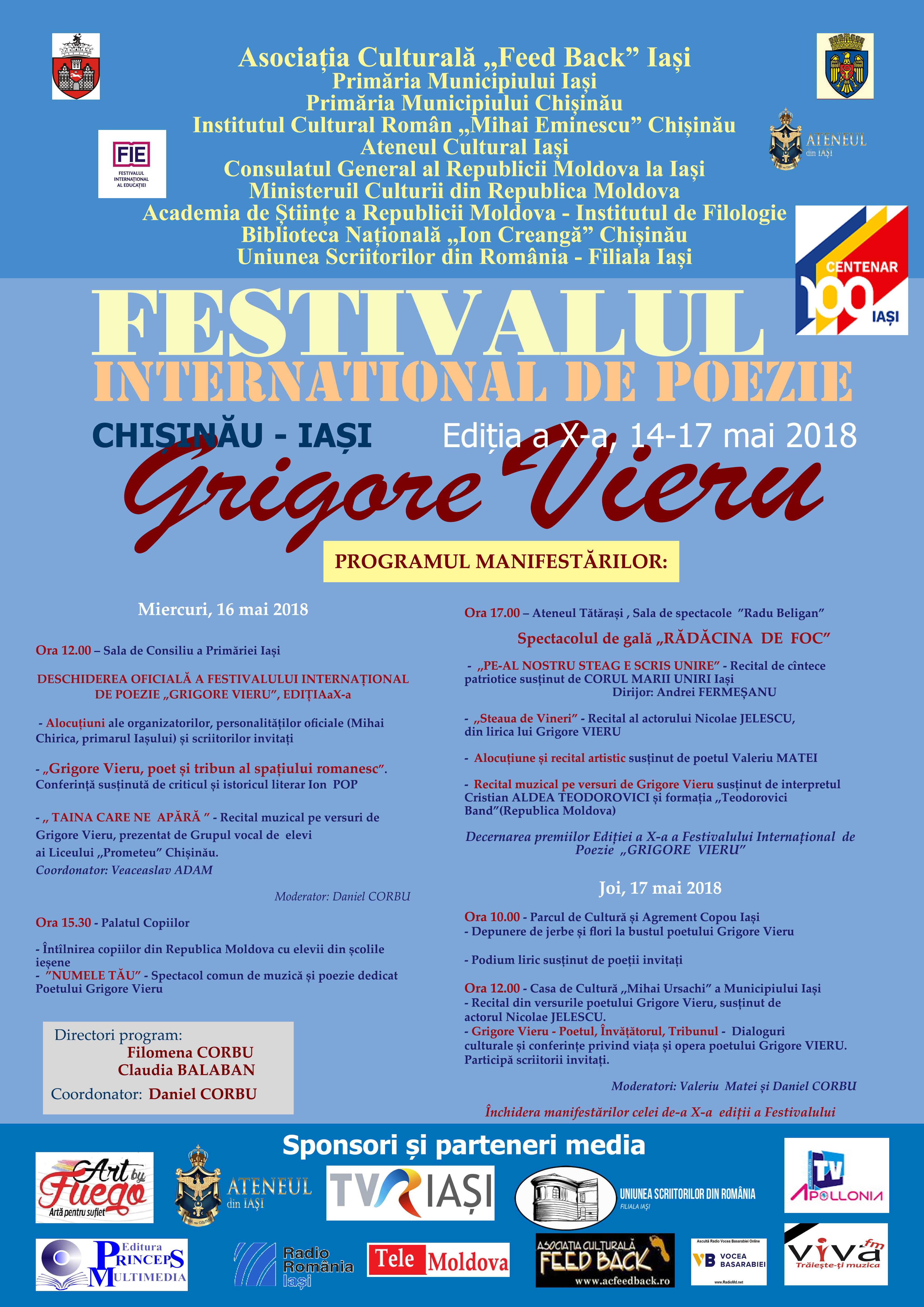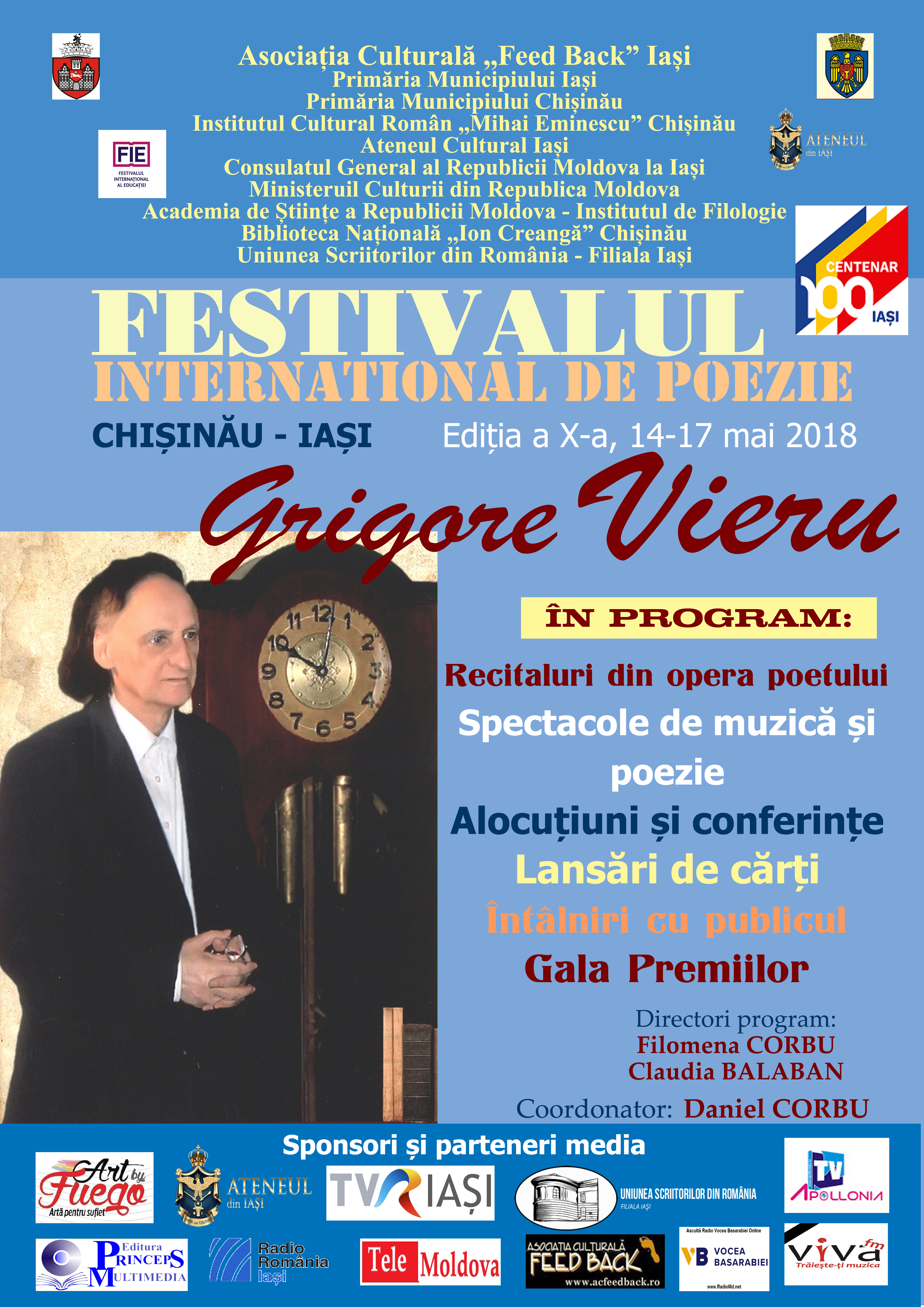 Festivalul Internațional de Poezie „Grigore Vieru”, ediția a X-a, 14-17 mai 2018