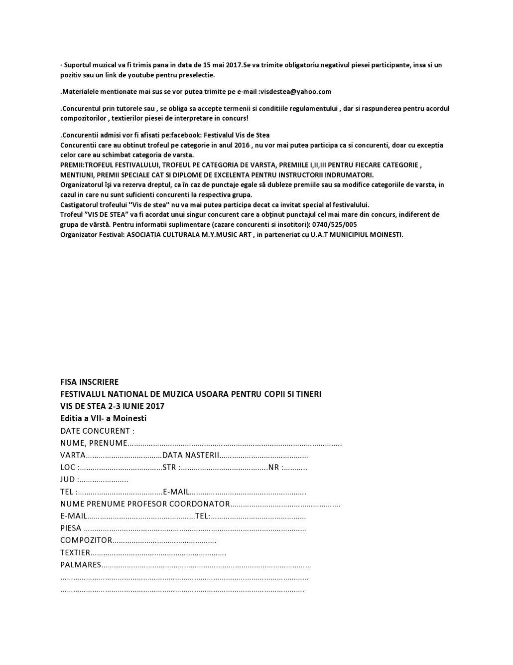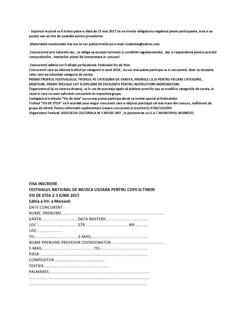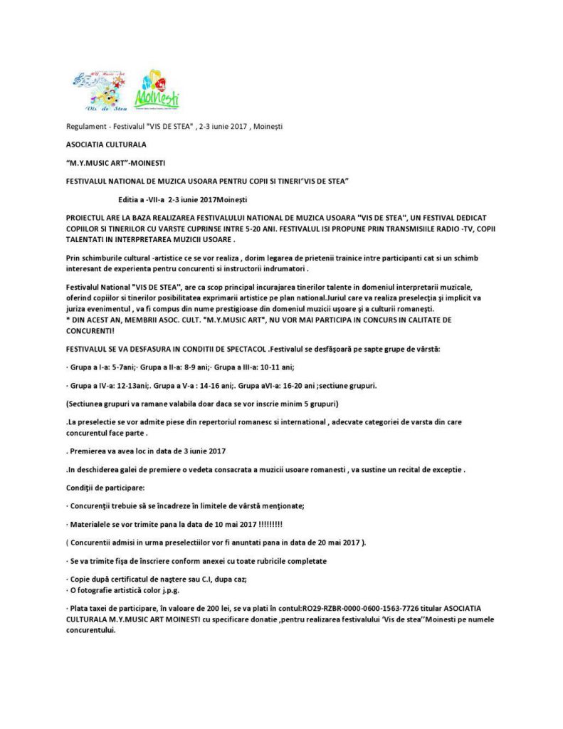 Festivalul „VIS DE STEA” , 2-3 iunie 2017 , Moinești