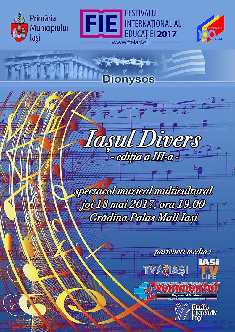 Asociatia Culturala Dionysos, organizeaza impreuna cu Primaria Municipiului Iasi, spectacolul  muzical multietnic „Iasul divers” – editia a III-a, in cadrul FIE 2017.