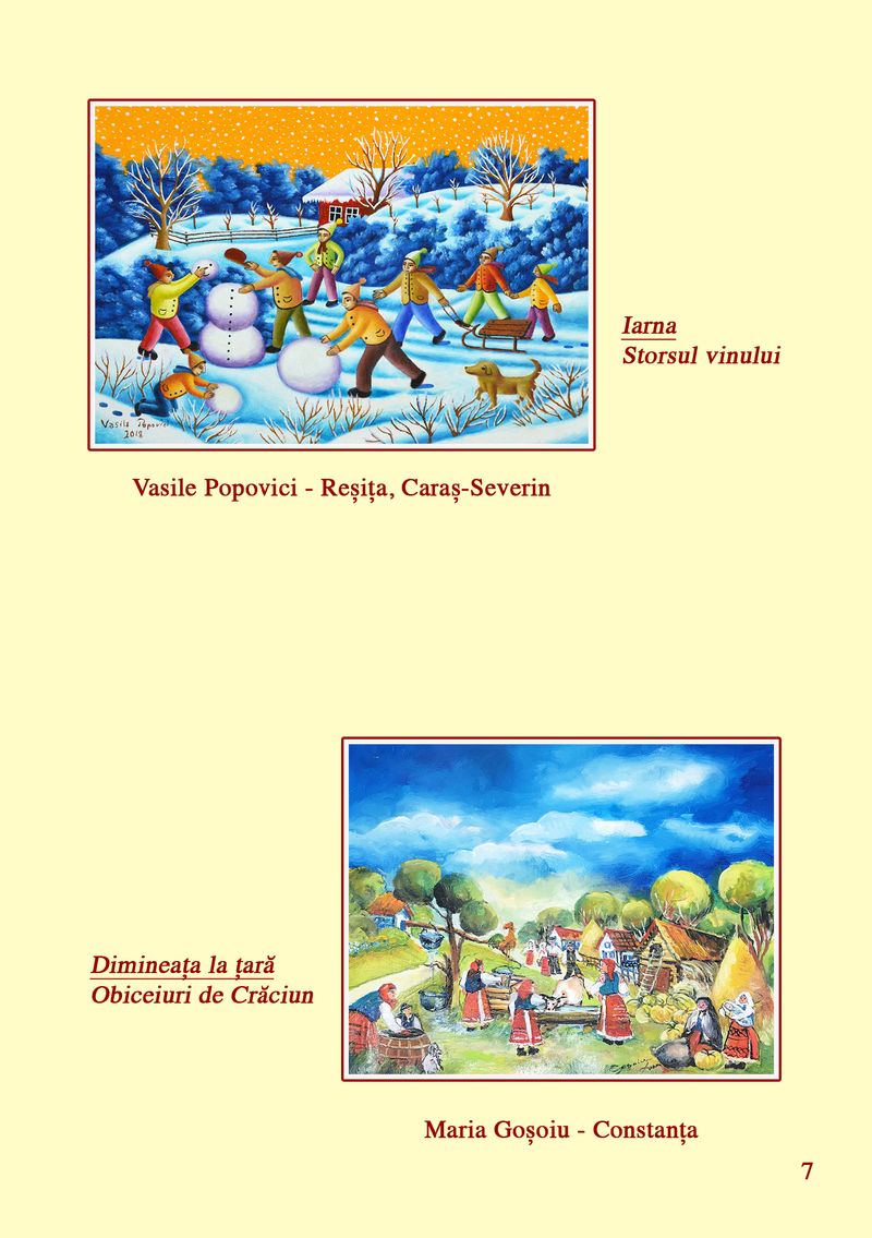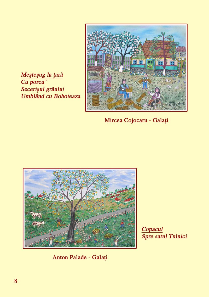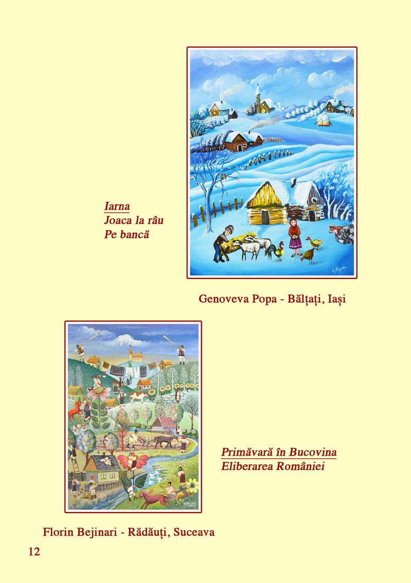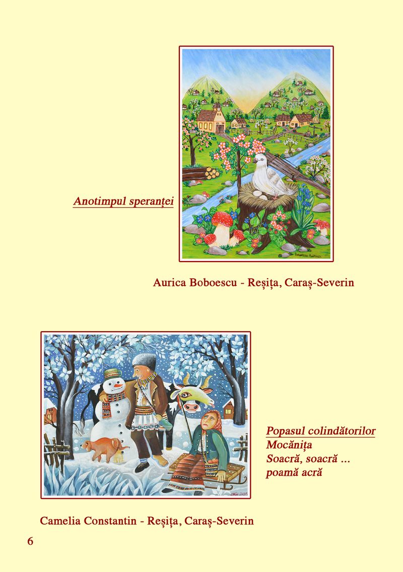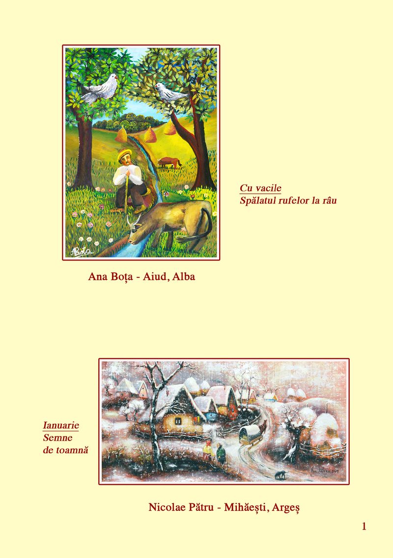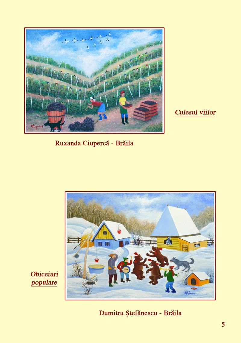 În cadrul expoziției, sunt prezentate lucrări ale pictorilor: Ana Boța, Nicolae Pătru, Calistrat Robu, Paul Robu, Ioan Măric, Niculina Măric, Catinca Popescu, Constantina Voicu, Salomia Andronic, Mihai Dascălu, Anton Palade, Vasile Popovici, Dumitru Ștefănescu, Aurica Boboescu, Maria Goșoiu, Mircea Cojocaru, Ruxandra Ciupercă, Gheorghe Boancă, Gheorghe Ciobanu, Lucica Ciobanu, Eduard Ciobanu, Genoveva Popa, Camelia Constantin, Florin Bejenari, Costică Onuță și Paula Iacob.
