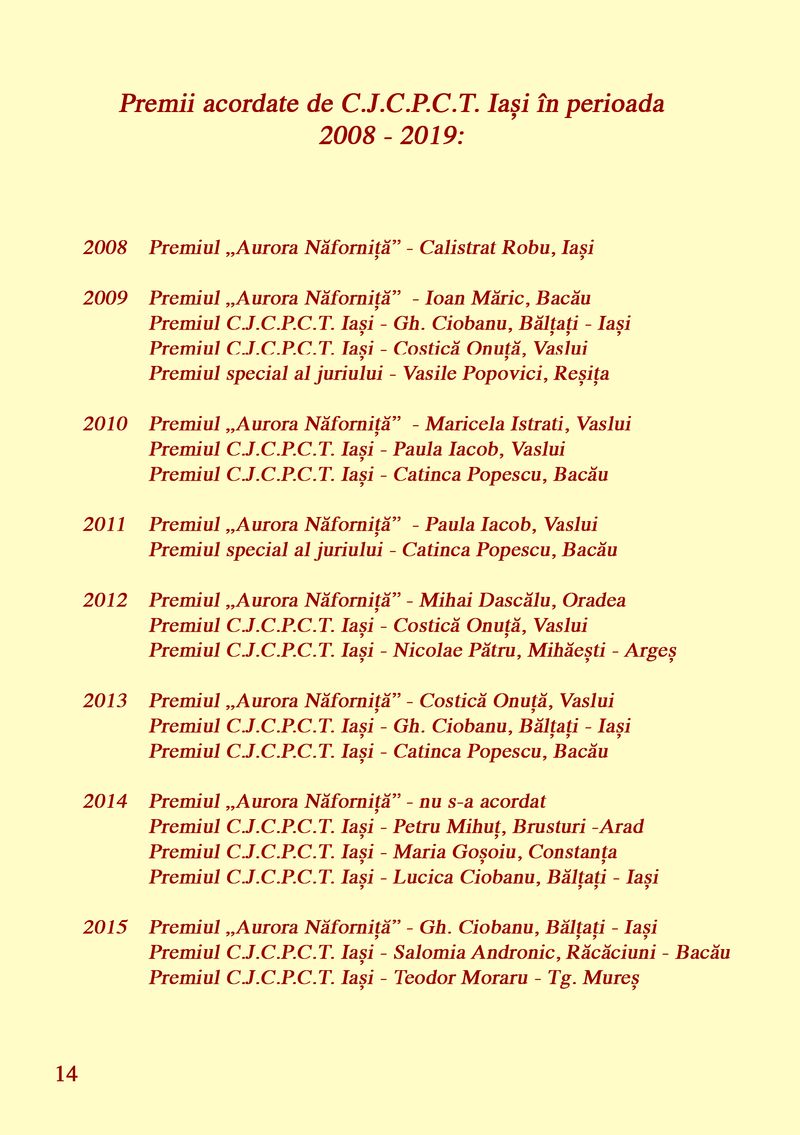 În perioada 28 mai – 21 iunie 2020, Consiliul Județean Iași, prin Centrul Județean pentru Conservarea și Promovarea Culturii Tradiționale Iași, organizează cea de a XXIX-a ediție a Expoziției naționale de artă naivă „Saloanele Moldovei”. La eveniment participă pictori consacrați din județele: Alba, Argeș, Bacău, Bihor, Brăila, Caraș-Severin, Constanța, Galați, Iași, Suceava și Vaslui.