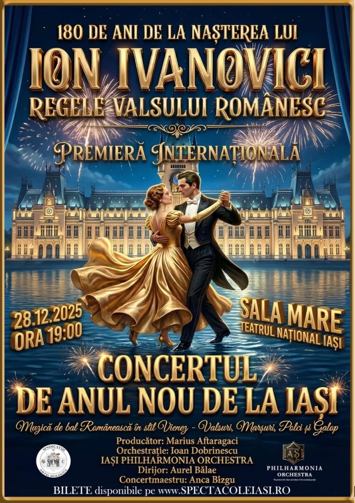 Iași Philharmonia Orchestra anunță Concertul de Anul Nou – ediția 2025 –, un eveniment cu totul special, dedicat aniversării a 180 de ani de la nașterea compozitorului Ion Ivanovici, autorul celebrului vals „Valurile Dunării”, una dintre cele mai interpretate lucrări românești din istorie.