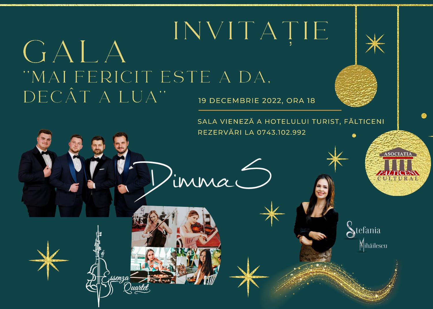 Luni, 19 decembrie 2022, ora 18.00, la Fălticeni, județul Suceava, a avut loc evenimentul cultural aflat sub genericul „MAI FERICIT ESTE A DA DECÂT A LUA”.