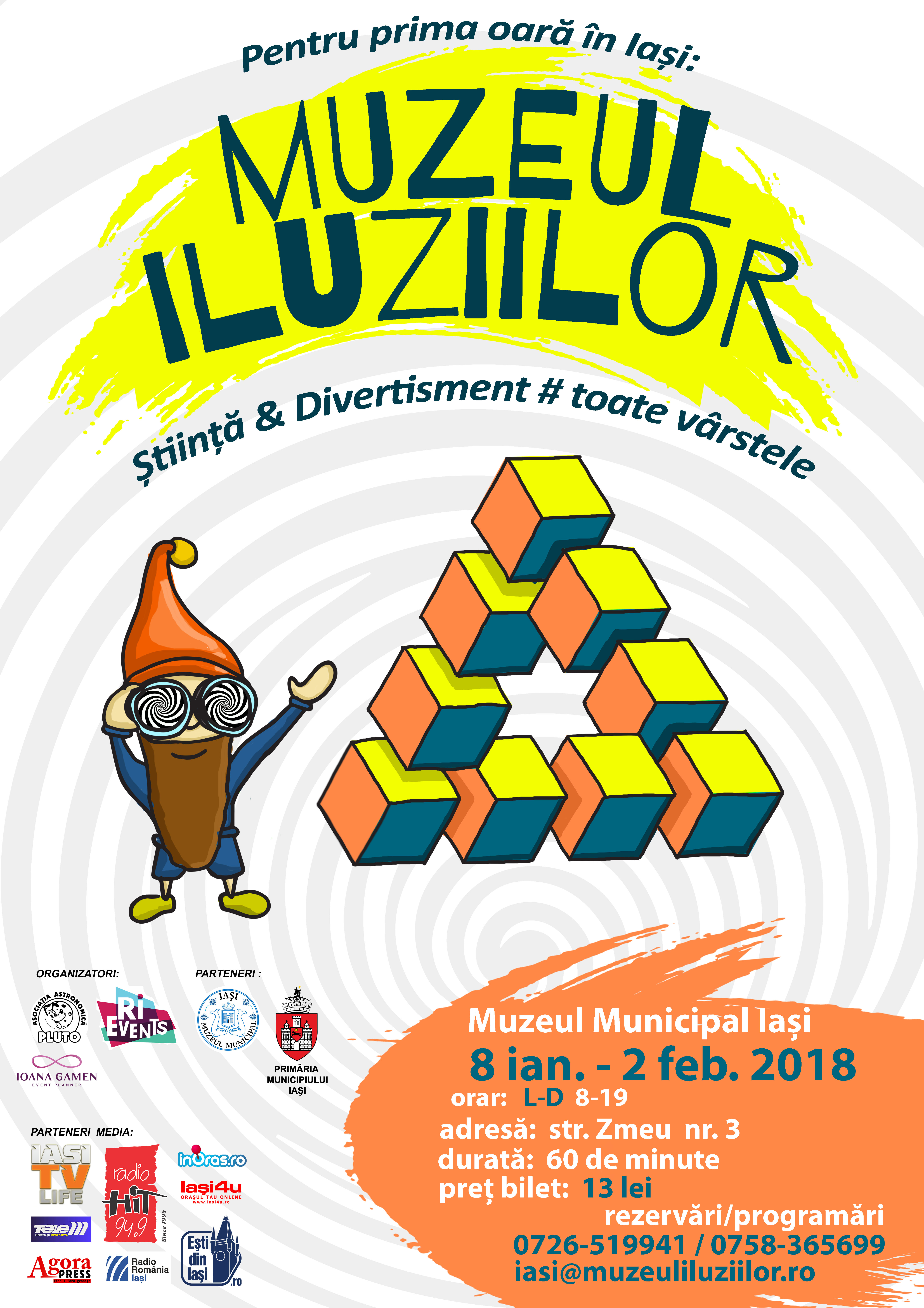 Muzeul Iluziilor este un proiect sustinut de catre Asociatia Astronomică Pluto în parteneriat cu Primaria Iasi, Muzeul Municipal Iasi, Ioana Gamen Events si RIevents.