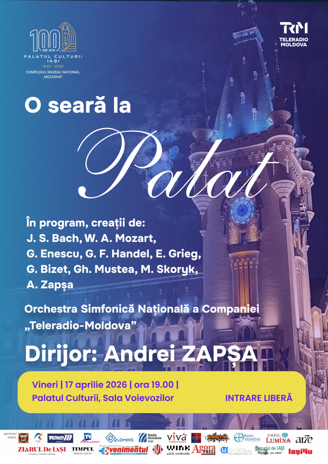 Complexul Muzeal Național „Moldova” Iași, în parteneriat cu „Teleradio Moldova” – Republica Moldova, invită publicul la un eveniment muzical special: „O seară la Palat”.