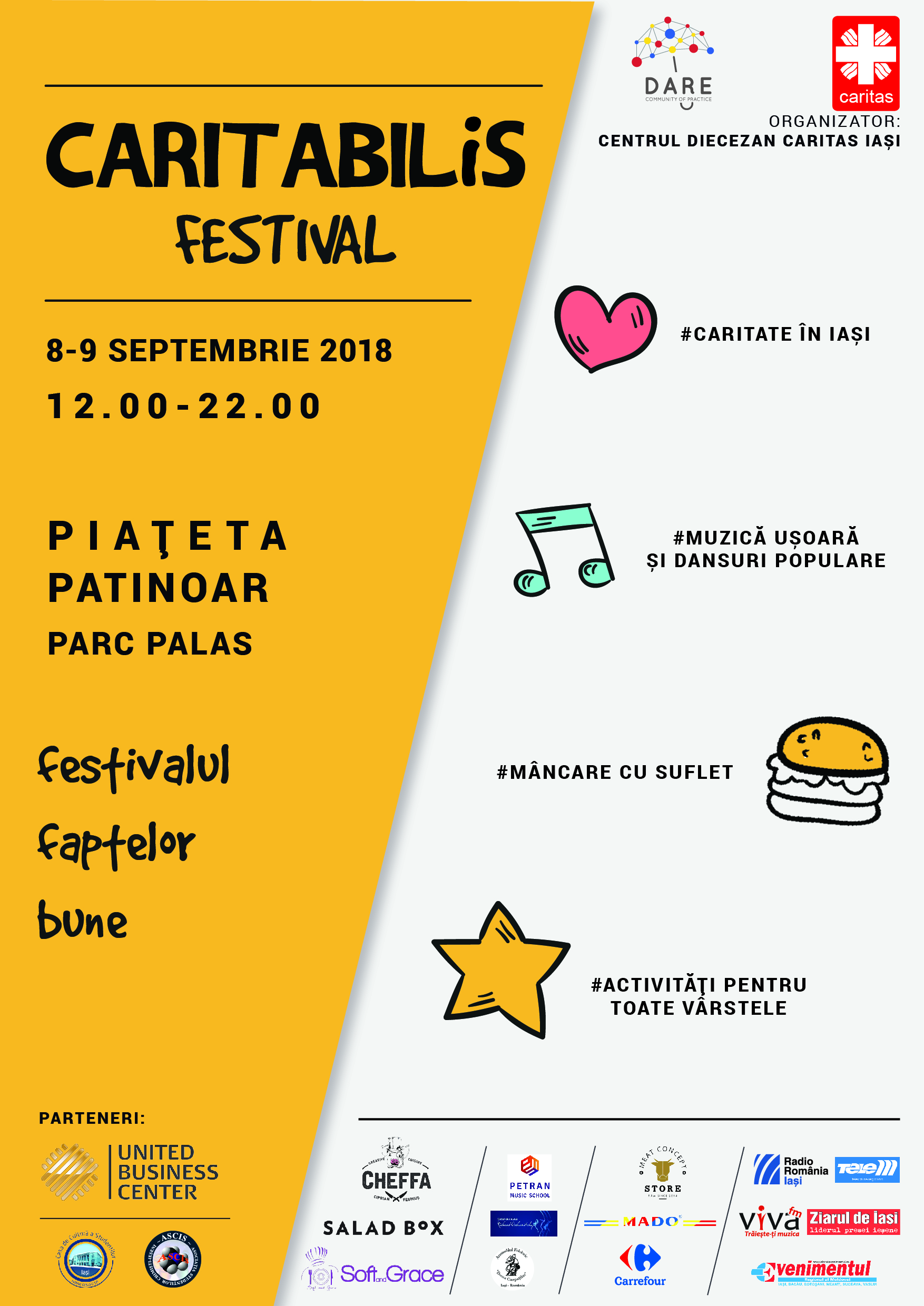 Prima Ediție CARITABILiS Festival organizată de către Centrul Diecezan Caritas Iași va avea loc în acest week-end începând cu ora 12.00 în Piațeta Patinoar din cadrul Ansamblului Urbanistic Palas.
