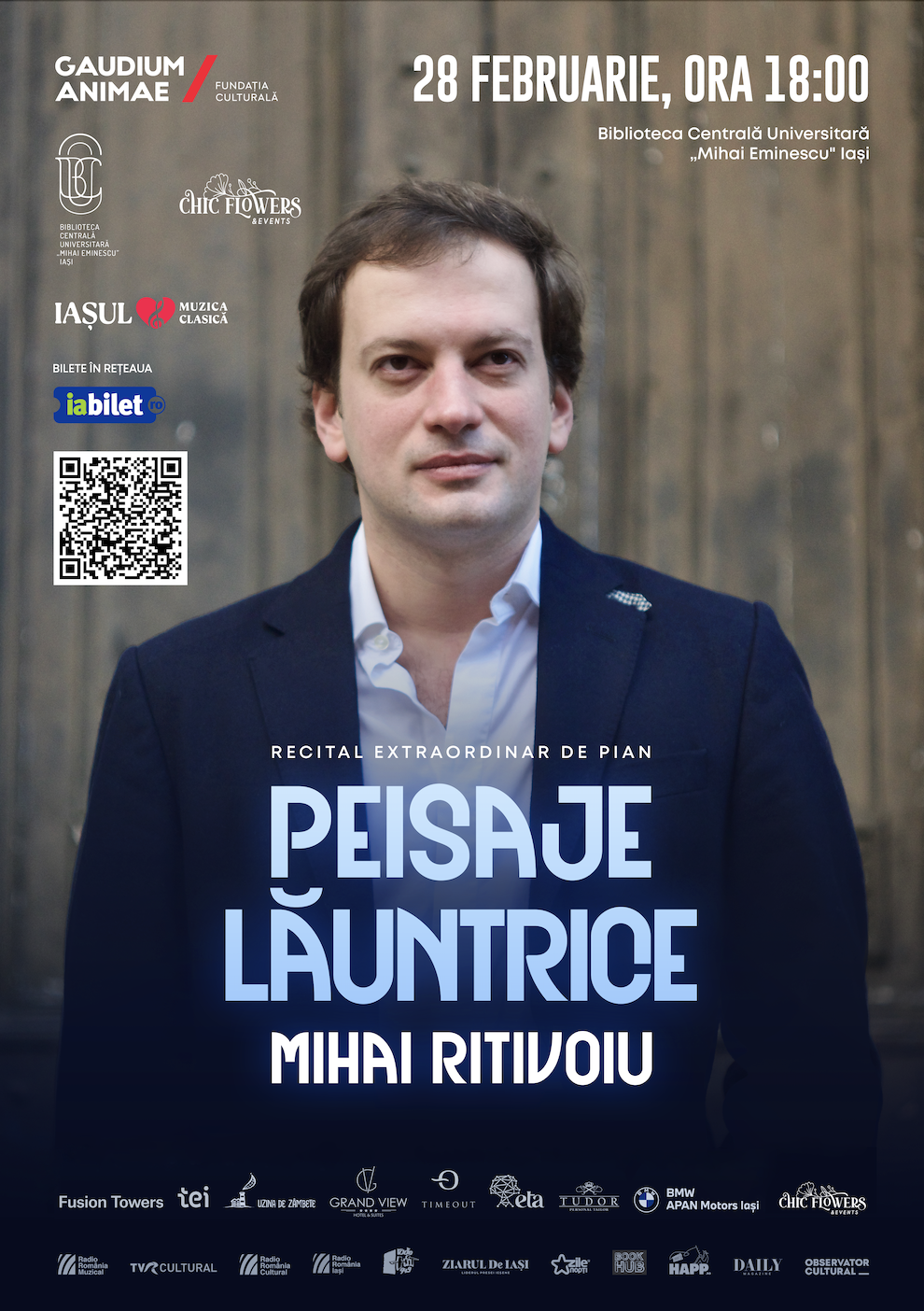ORGANIZATORI: recitalul extraordinar „Peisaje lăuntrice” este organizat de Fundația Culturală Gaudium Animae, în parteneriat cu Biblioteca Centrală Universitară „Mihai Eminescu”, Iași.