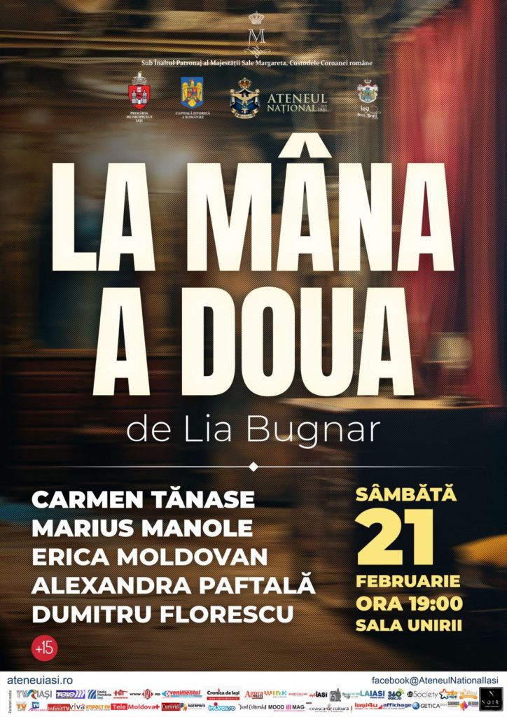 Ateneul Național din Iași deschide stagiunea premierelor din anul 2026 cu o producție eveniment, propunând publicului spectacolul „La mâna a doua”, scris și regizat de Lia Bugnar. Evenimentul, programat pe 20 și 21 februarie 2026, de la ora 19:00, la Sala Unirii, marchează prima premieră de teatru a anului pentru instituția ieșeană, debutând sub semnul calității și al introspecției umane într-o montare ce promite să devină un punct de referință al sezonului.