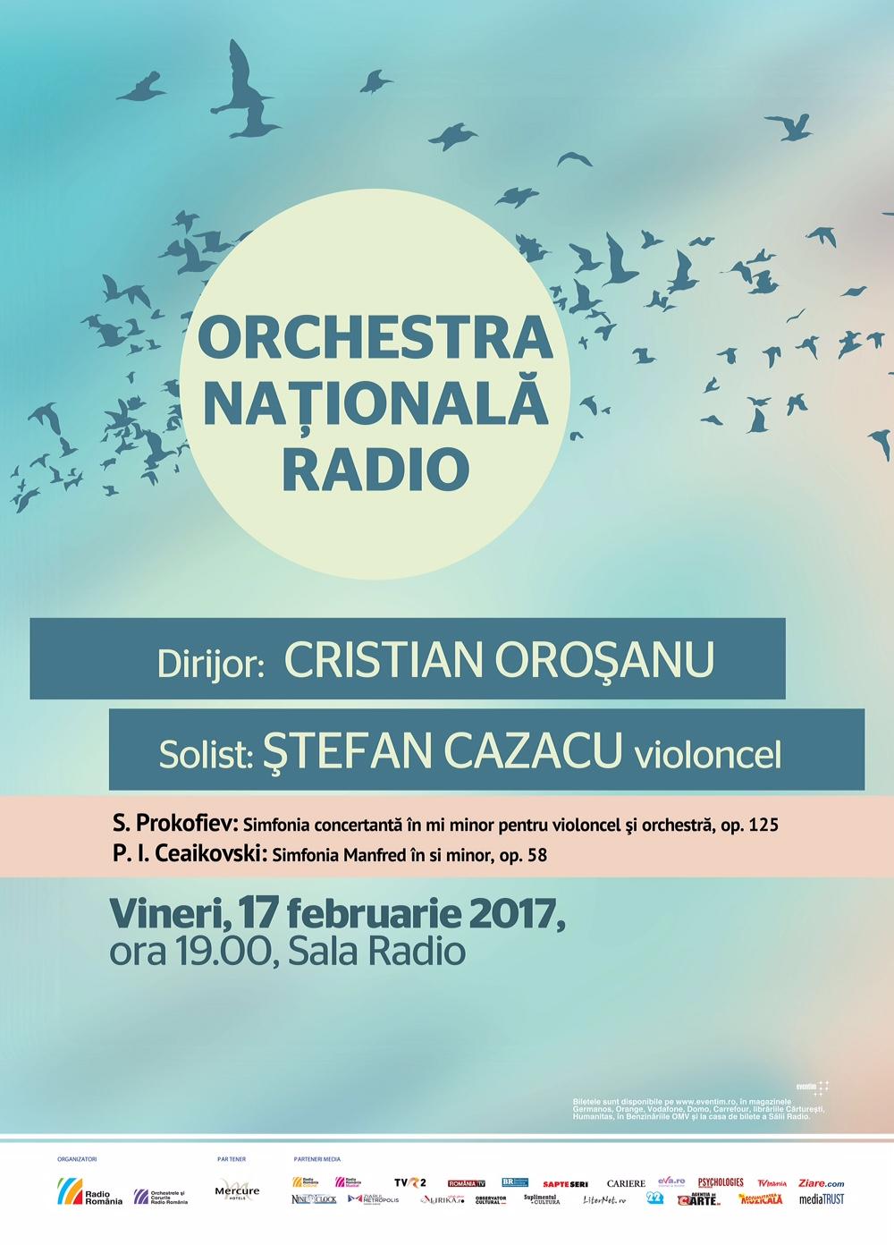 Concertul Orchestrei Naţionale Radio din 17 februarie, ora 19:00, de la Sala Radio, îl va aduce la pupitru pe cunoscutul dirijor Cristian Oroşanu. Programul va cuprinde exclusiv muzică rusă, respectiv Simfonia concertantă în mi minor pentru violoncel şi orchestră, op. 125 de Prokofiev, avându-l ca solist pe tânărul violoncelist Ştefan Cazacu, şi superba Simfonie Manfred în si minor, op. 58, de Ceaikovski.