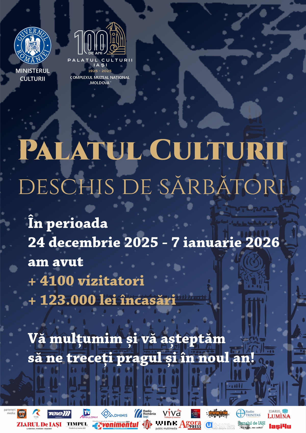 Deschis în fiecare zi, pe parcursul sărbătorilor, Palatul Culturii a fost vizitat în perioada 24 decembrie 2025 – 7 ianuarie 2026, atât de ieșeni, cât și de turiști din numeroase orașe ale țării și din străinătate, înregistrând peste 4.100 de vizitatori și încasări de peste 123.000 lei.