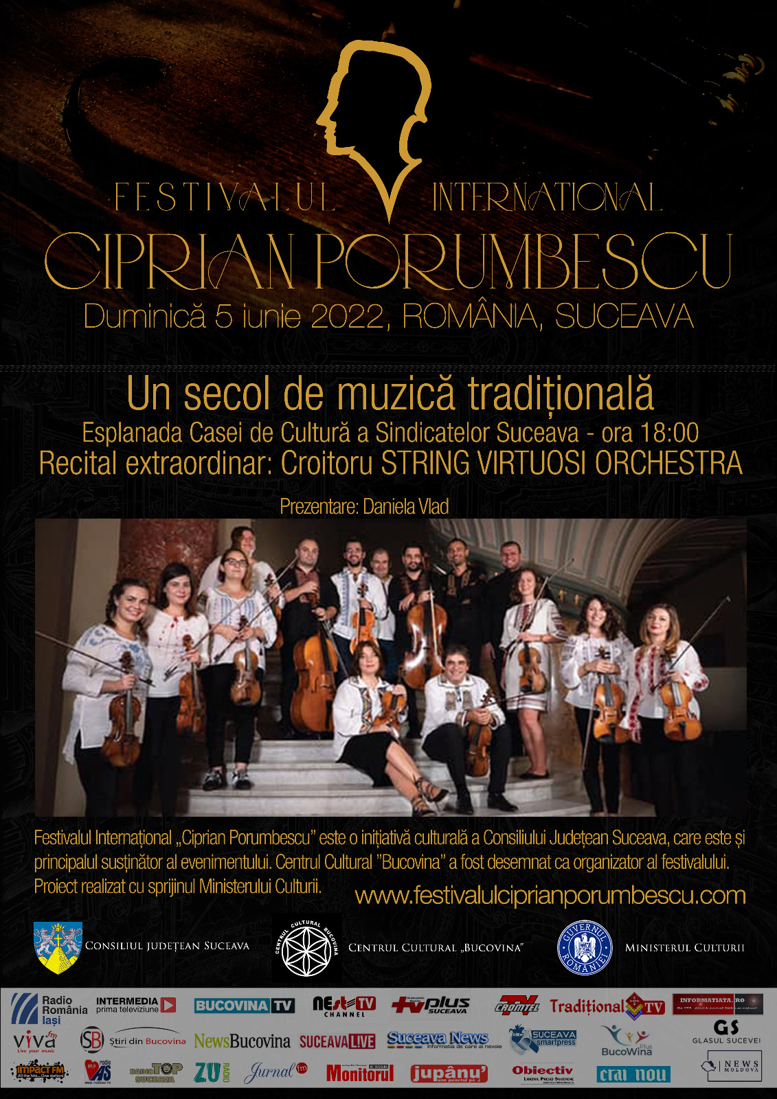 5 iunie 2022 ora 18.00 Esplanada Centrală Municipală CROITORU STRING VIRTUOSI -„Un secol de muzică tradițională pe scena filarmonicii„.