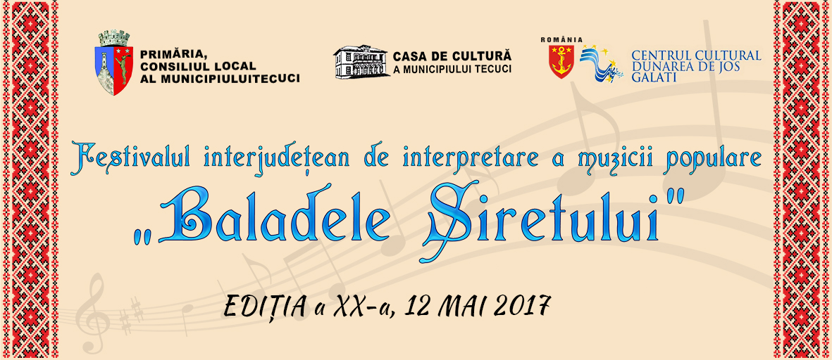 Casa de Cultură a municipiului Tecuci organizează vineri, 12 mai 2017, festivalul interjudețean de interpretare a muzicii populare „Baladele Siretului”.