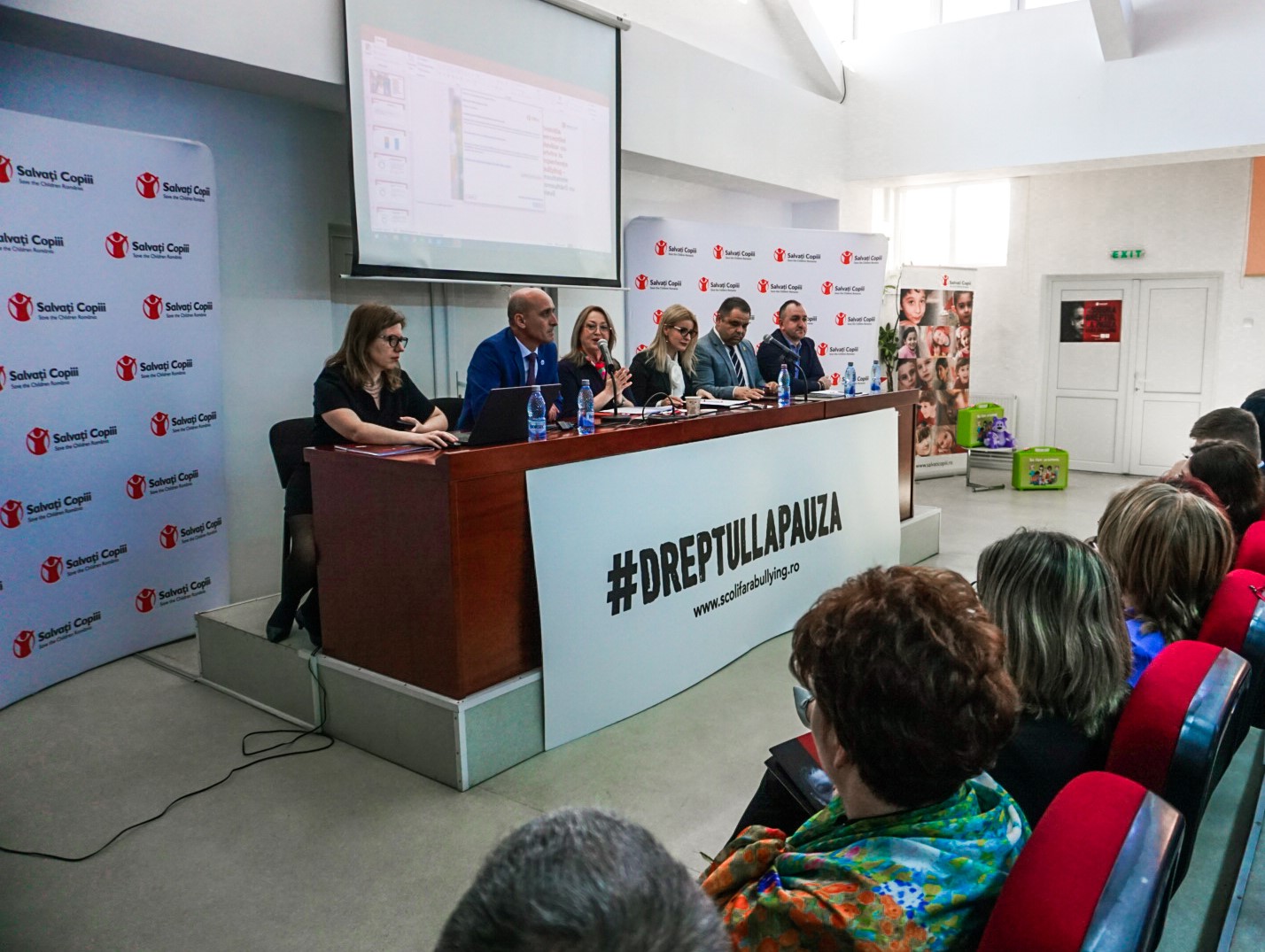 Astfel, Salvați Copiii România, în parteneriat cu Ministerul Educației, a organizat Conferința regională „Dreptul la pauză fără bullying – cooperare și bune practici pentru comunități educaționale sigure”, în data de 23 martie, la Târgoviște, un seminar intensiv cu toți actorii relevați din domeniul educației și protecției copilului cu responsabilități în prevenirea și diminuarea fenomenului de bullying din regiunea Sud-Muntenia (Argeș, Ialomița, Călărași, Giurgiu, Teleorman, Prahova, Dâmbovița).