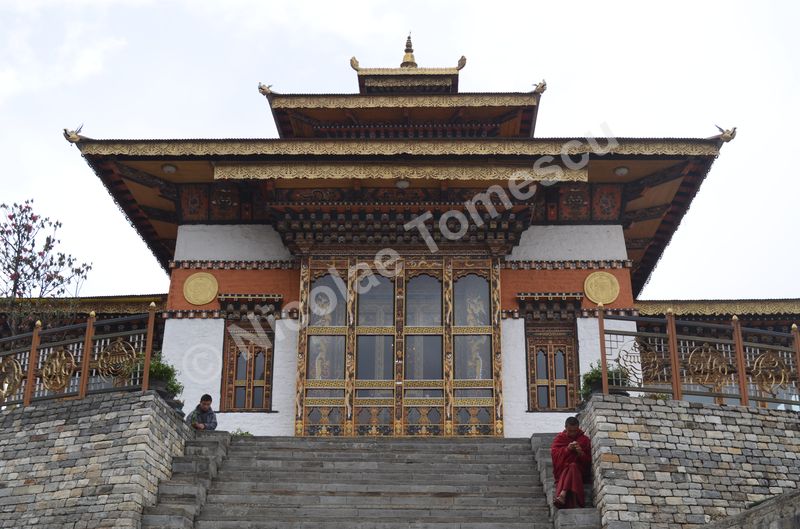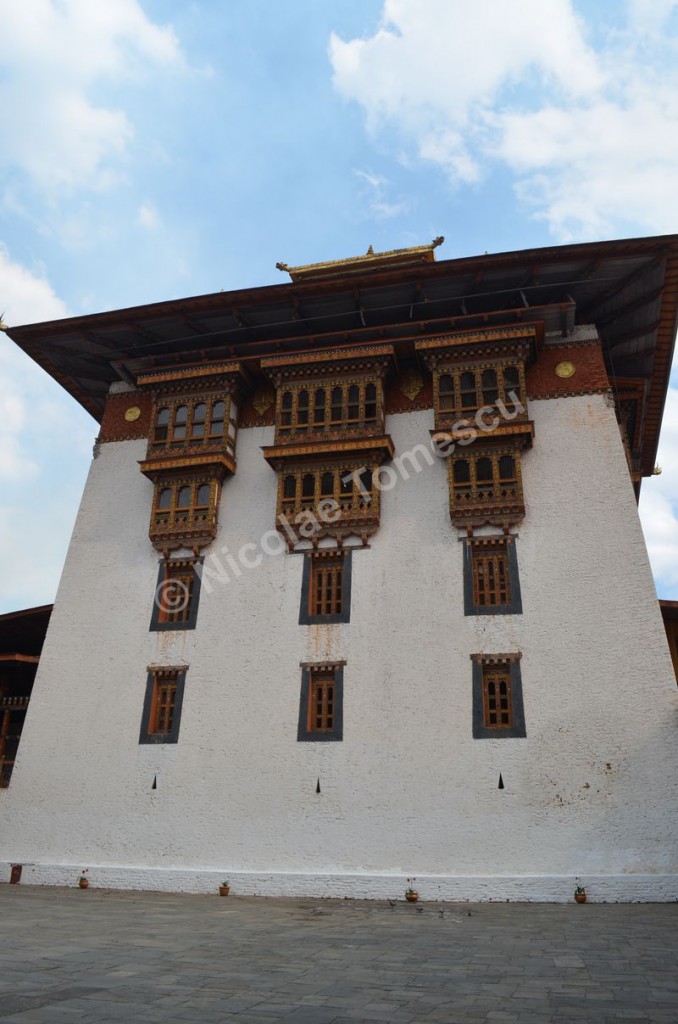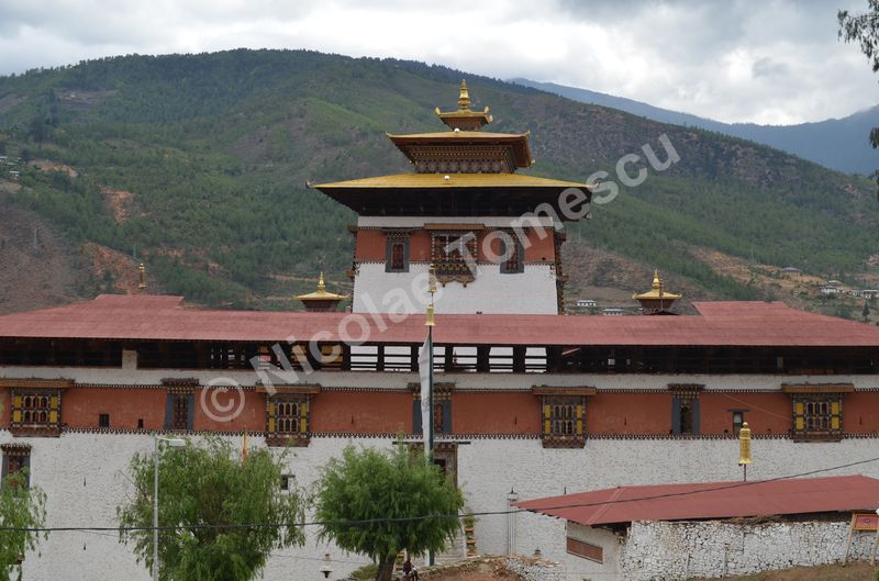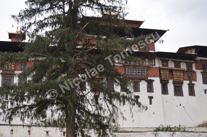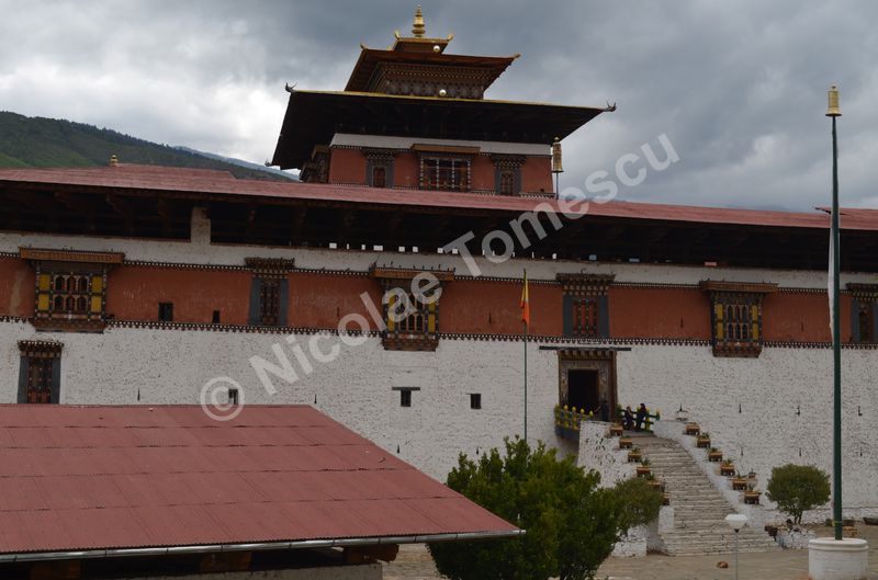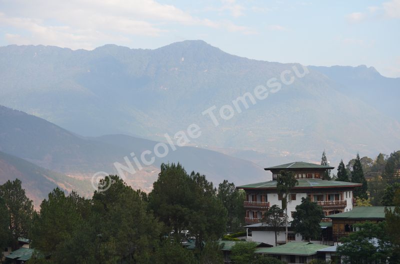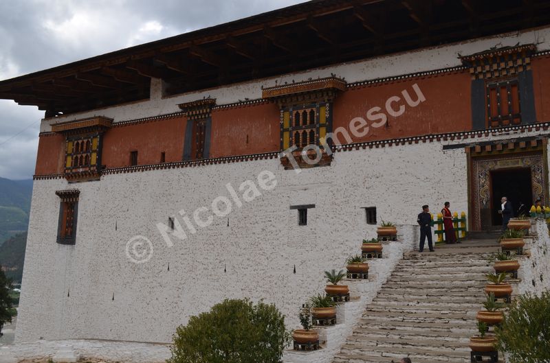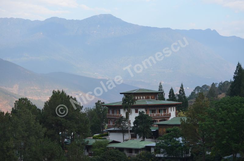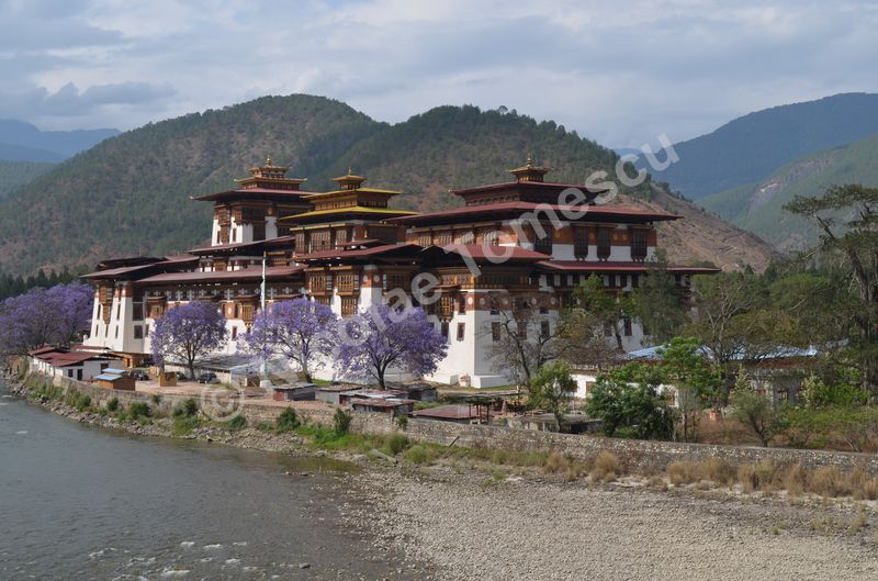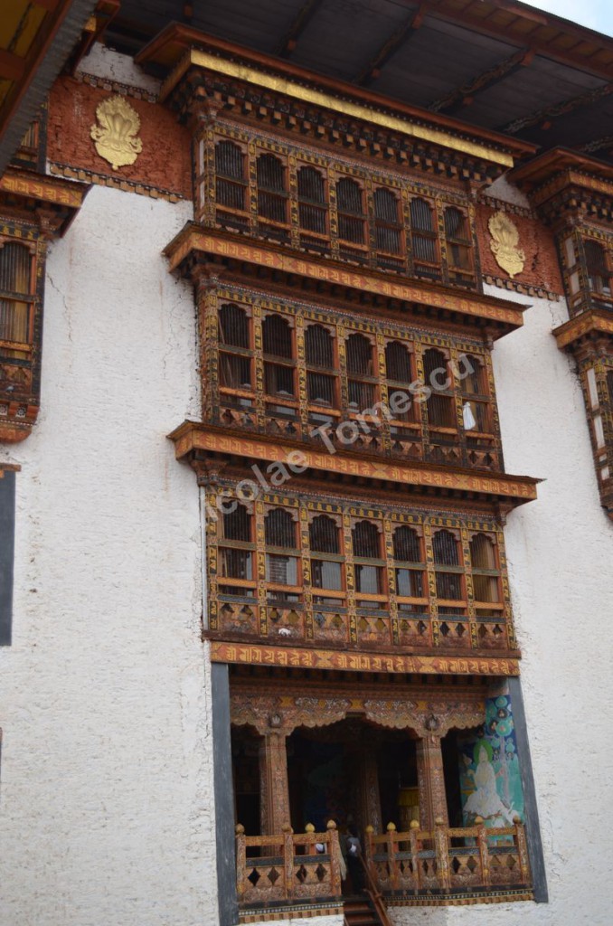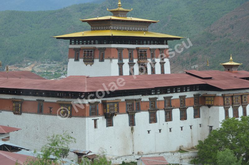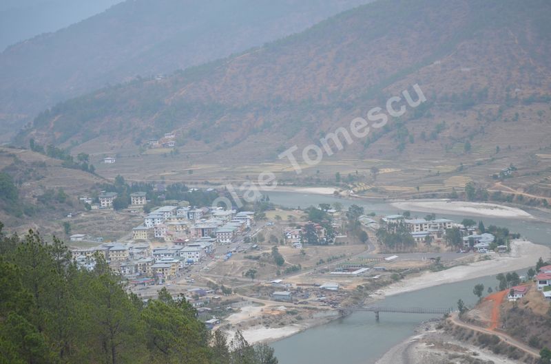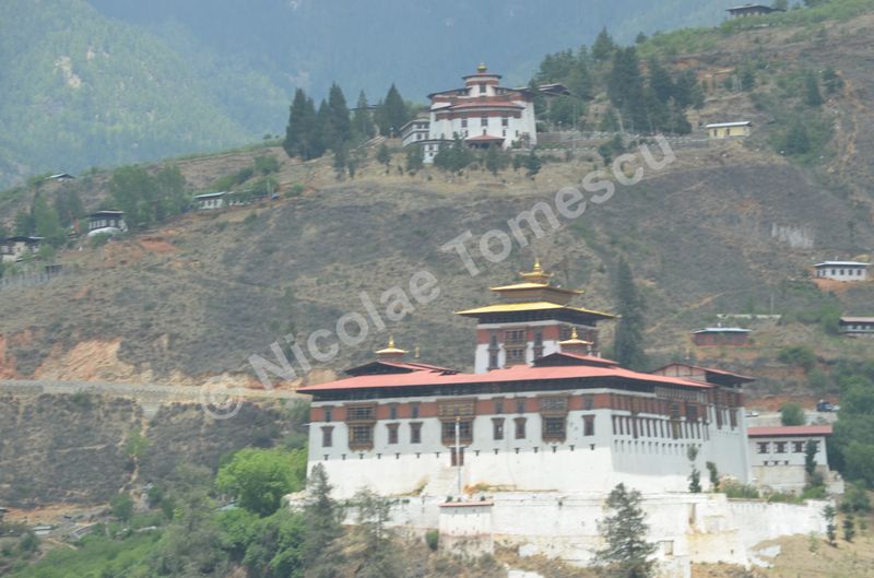 Am vizitat „Fortăreața Glorioasei Religii”, Tashichho Dzong, care domină zona, într-un mod maiestuos, prin grandoarea și frumusețea stilului tradițional în care a fost construită. Este centrul guvernământului și centrul religios, aici aflându-se locul sălii tronului și sediul Je Khenpo (abatele-șef), construit în anul 1641 de Shabdnung Ngawang Namgyal, unificatorul politic și religios al Bhutanului, reconstruit în anii ’60 ai secolului XX în manieră tradițional bhutaneză. Am pătruns în Memorialul Chorten, devenit emblema Bhutanului, cea mai impresionantă stupă dedicată celui de-al treilea rege Jigme Dorji Wangchuck, supranumit „Tatăl Bhutanului Modern”, construită la inițiativa mamei sale, Regina Ashi Phuntsho Choden Wangchuck (în 1774), la doi ani după pierderea fiului său, un monument al păcii, înconjurat permanent de „pelerine” care murmură mantre și învârt roți de rugăciune. Turul de oraș continua cu Institutul de Medicină Tradițională, fondat pentru a îmbunătăți medicina tradițională din regat, Muzeul Textilelor – care prezintă o gamă vastă de produse din materiale textile, produse mesteșugărești și obiecte decorative, Changangkha Lhakhang, cel mai vechi templu din Thimphu – datează din secolul al XV-lea, Biblioteca Națională – care păstrează o colecție inestimabilă de manuscrise antice budhiste și Institutul Zorig Chusum, cu o școală importantă de pictură, unde studenții deprind mesteșuguri tradiționale, mai ales arta de a picta „thanka”, manuscrisele sfinte buddhiste. Guvernul a fondat și a sponsorizat, în anul 1971, acest institut național pentru a promova și păstra nealterată cultura, pentru a contribui la dezvoltarea economică a țării prin produse și servicii de calitate; de-a lungul istoriei, Bhutanul a conservat o tradiție istorică unică; aceasta a jucat un rol vital în modelarea patrimoniului cultural distinct a cărui continuitate este reflectată în cele 13 arte și meșteșuguri. Am ajuns apoi la Nunnery, unde maicile budhiste practică dharma, la punctul de belvedere Sangaygang, de unde se vede întreaga Vale Thimphu, la Mini Zoo pentru a vedea Takin–ul, animalul național al Bhutanului. Ne-am deplasat spre Punakha (capitala Regatului Bhutanez, până în anul 1955), localitate în care își are reședinta de iarnă Je-Khempo, conducătorul religios al Bhutanului. De-a lungul drumului ne întâmpinase, la tot pasul, armonia celestă dintre peisajele și liniștea montană de aici, dar și steagurile cu rugăciuni ale celor mai pioși budiști. Am trecut prin pasul Dochula, situat la o altitudine de aproximativ 3.100 m, unde am oprit pentru fotografii, nefiind posibil să distingem vârfurile de peste 7.000 m ale munților Himalaya de est, ratând – și la dus și la întoarcere – priveliștea asupra Gankher Puensum (7.497 m). Câmpuri terasate, zone împădurite, înainte de a ajunge la partea de sus a unor dealuri, apoi drumul coboară prin păduri de rododendroni și magnolii, după care am trecut printr-o zonă semi-tropicală cu portocali, bananieri, cactuși…