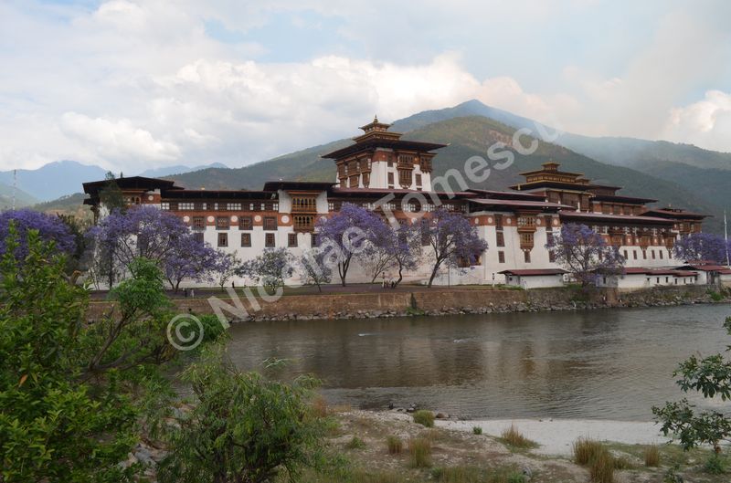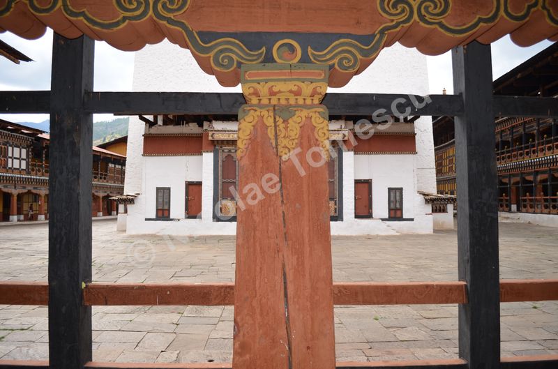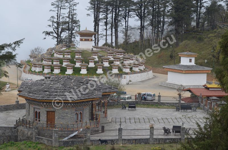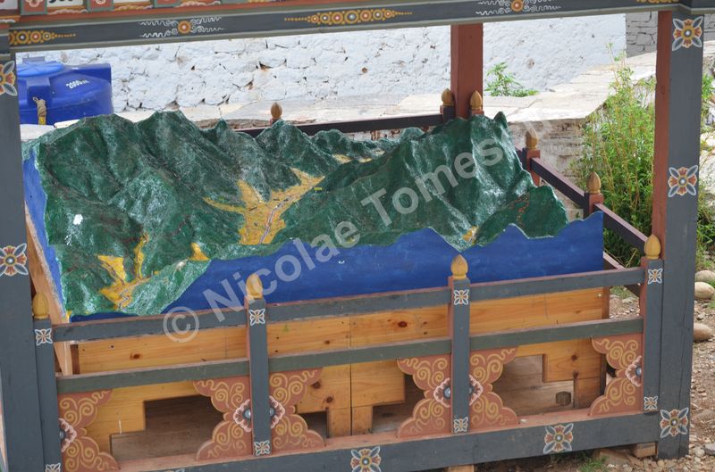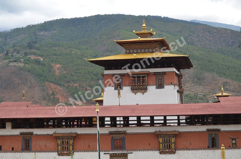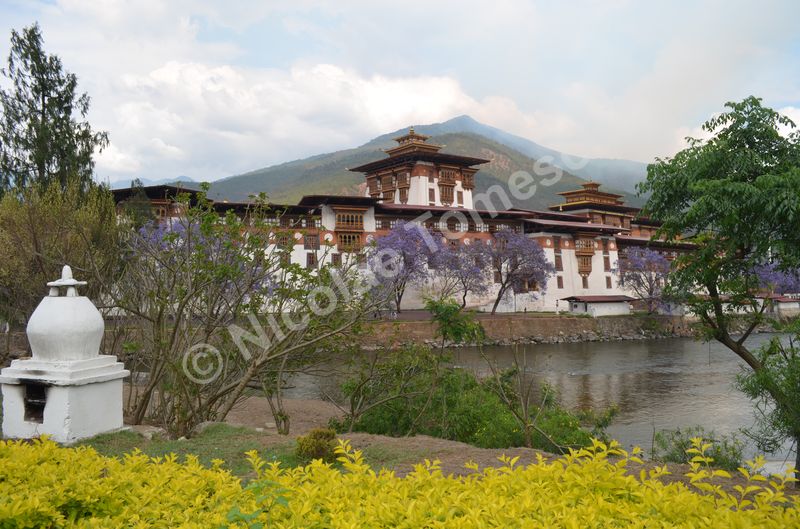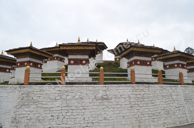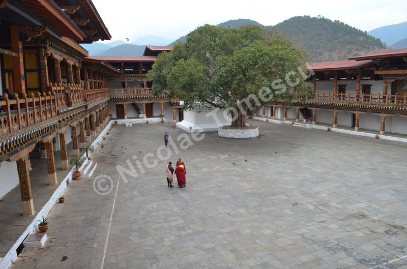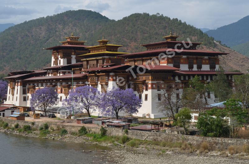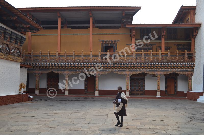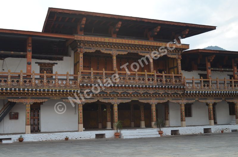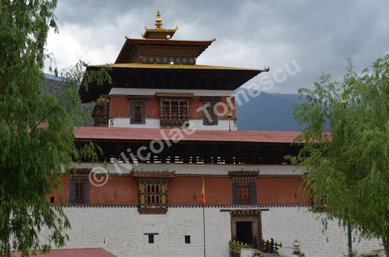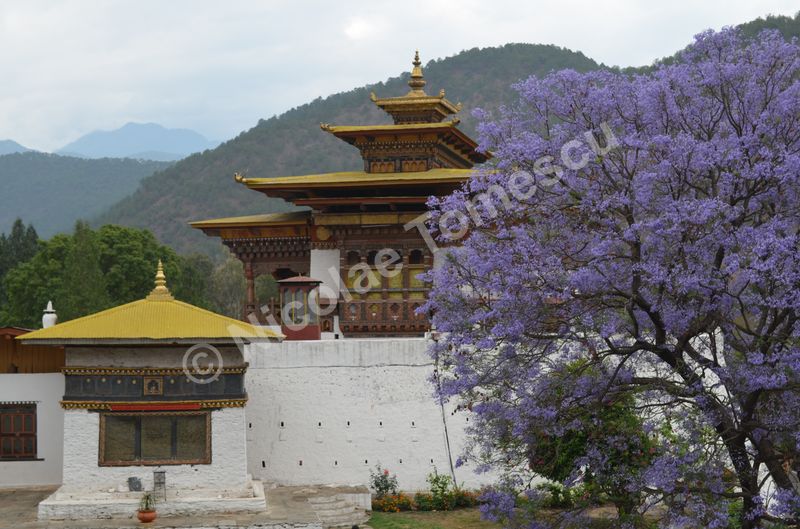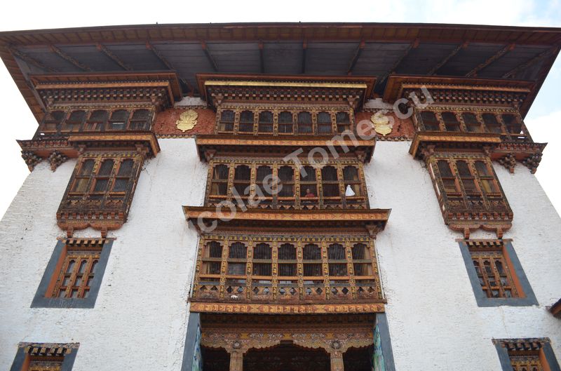 Am vizitat „Fortăreața Glorioasei Religii”, Tashichho Dzong, care domină zona, într-un mod maiestuos, prin grandoarea și frumusețea stilului tradițional în care a fost construită. Este centrul guvernământului și centrul religios, aici aflându-se locul sălii tronului și sediul Je Khenpo (abatele-șef), construit în anul 1641 de Shabdnung Ngawang Namgyal, unificatorul politic și religios al Bhutanului, reconstruit în anii ’60 ai secolului XX în manieră tradițional bhutaneză. Am pătruns în Memorialul Chorten, devenit emblema Bhutanului, cea mai impresionantă stupă dedicată celui de-al treilea rege Jigme Dorji Wangchuck, supranumit „Tatăl Bhutanului Modern”, construită la inițiativa mamei sale, Regina Ashi Phuntsho Choden Wangchuck (în 1774), la doi ani după pierderea fiului său, un monument al păcii, înconjurat permanent de „pelerine” care murmură mantre și învârt roți de rugăciune. Turul de oraș continua cu Institutul de Medicină Tradițională, fondat pentru a îmbunătăți medicina tradițională din regat, Muzeul Textilelor – care prezintă o gamă vastă de produse din materiale textile, produse mesteșugărești și obiecte decorative, Changangkha Lhakhang, cel mai vechi templu din Thimphu – datează din secolul al XV-lea, Biblioteca Națională – care păstrează o colecție inestimabilă de manuscrise antice budhiste și Institutul Zorig Chusum, cu o școală importantă de pictură, unde studenții deprind mesteșuguri tradiționale, mai ales arta de a picta „thanka”, manuscrisele sfinte buddhiste. Guvernul a fondat și a sponsorizat, în anul 1971, acest institut național pentru a promova și păstra nealterată cultura, pentru a contribui la dezvoltarea economică a țării prin produse și servicii de calitate; de-a lungul istoriei, Bhutanul a conservat o tradiție istorică unică; aceasta a jucat un rol vital în modelarea patrimoniului cultural distinct a cărui continuitate este reflectată în cele 13 arte și meșteșuguri. Am ajuns apoi la Nunnery, unde maicile budhiste practică dharma, la punctul de belvedere Sangaygang, de unde se vede întreaga Vale Thimphu, la Mini Zoo pentru a vedea Takin–ul, animalul național al Bhutanului. Ne-am deplasat spre Punakha (capitala Regatului Bhutanez, până în anul 1955), localitate în care își are reședinta de iarnă Je-Khempo, conducătorul religios al Bhutanului. De-a lungul drumului ne întâmpinase, la tot pasul, armonia celestă dintre peisajele și liniștea montană de aici, dar și steagurile cu rugăciuni ale celor mai pioși budiști. Am trecut prin pasul Dochula, situat la o altitudine de aproximativ 3.100 m, unde am oprit pentru fotografii, nefiind posibil să distingem vârfurile de peste 7.000 m ale munților Himalaya de est, ratând – și la dus și la întoarcere – priveliștea asupra Gankher Puensum (7.497 m). Câmpuri terasate, zone împădurite, înainte de a ajunge la partea de sus a unor dealuri, apoi drumul coboară prin păduri de rododendroni și magnolii, după care am trecut printr-o zonă semi-tropicală cu portocali, bananieri, cactuși…