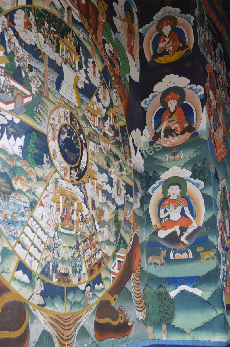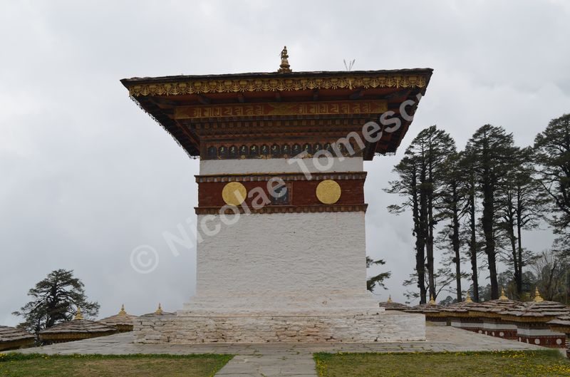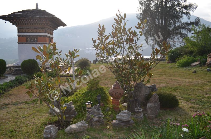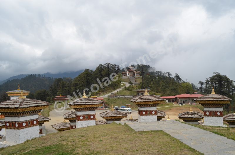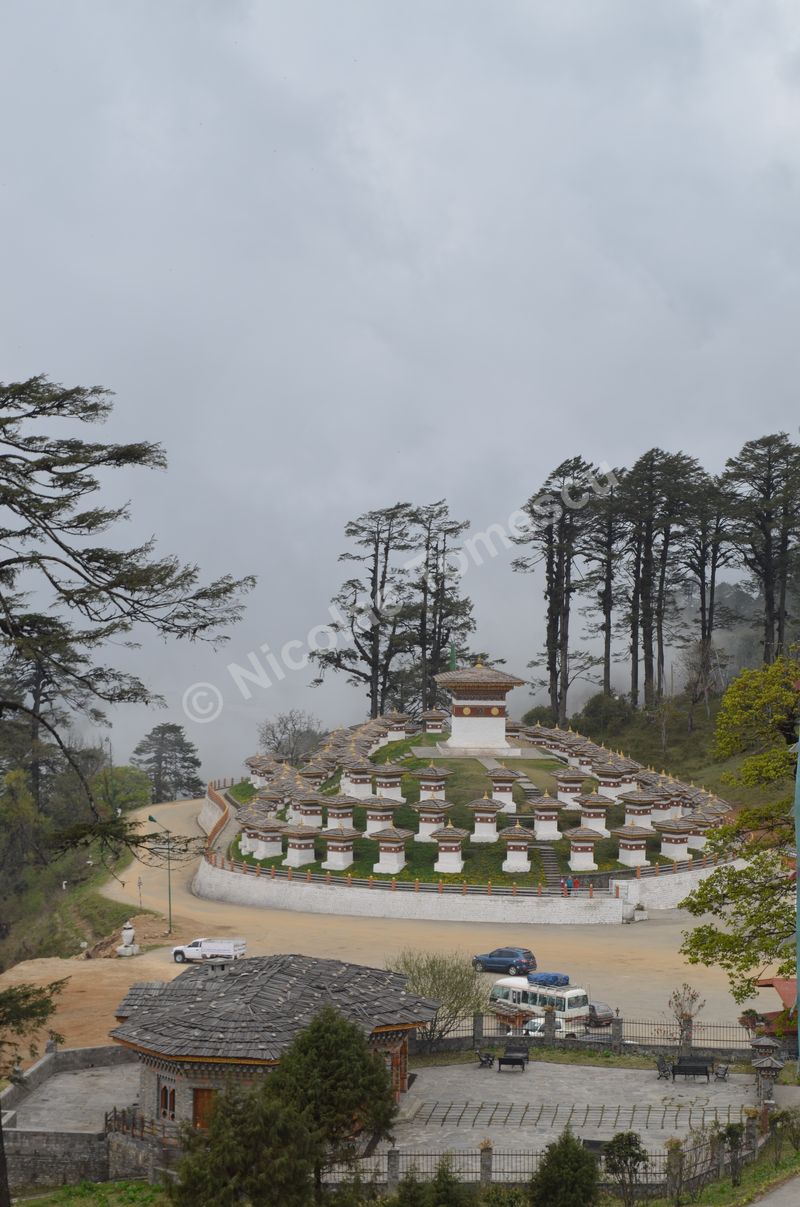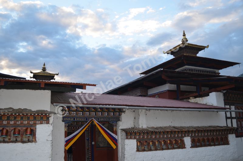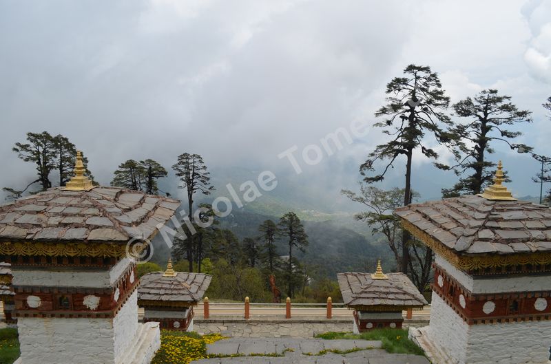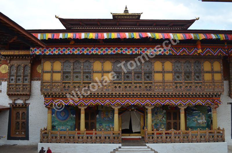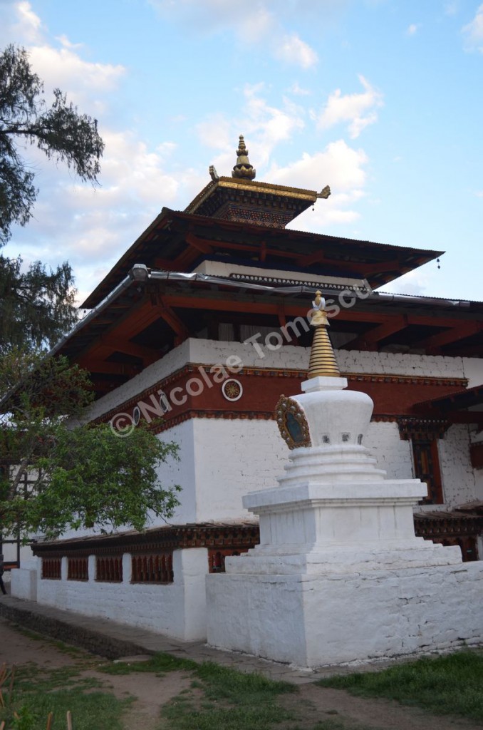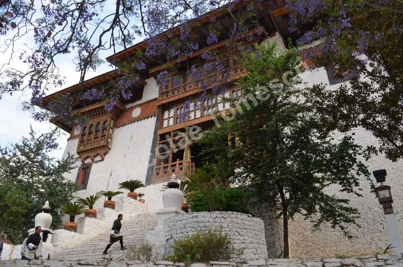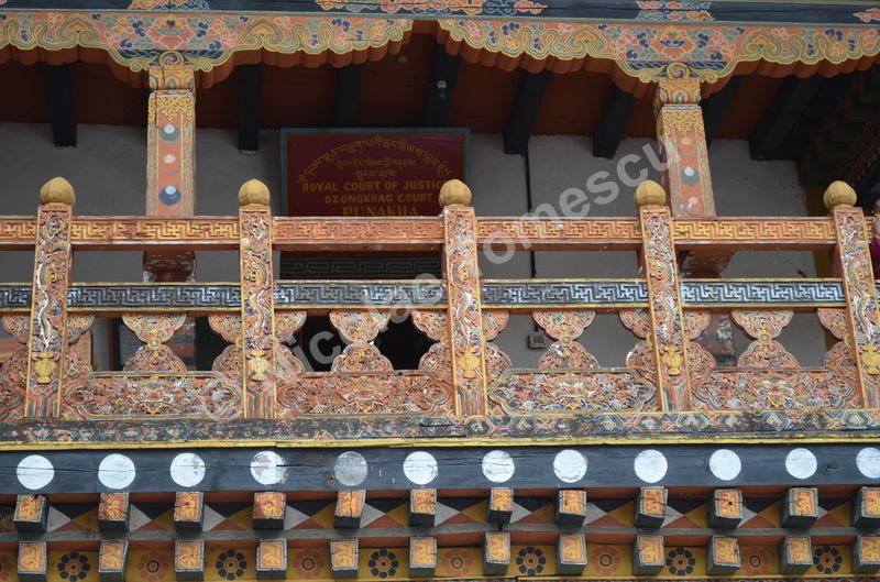 Am vizitat „Fortăreața Glorioasei Religii”, Tashichho Dzong, care domină zona, într-un mod maiestuos, prin grandoarea și frumusețea stilului tradițional în care a fost construită. Este centrul guvernământului și centrul religios, aici aflându-se locul sălii tronului și sediul Je Khenpo (abatele-șef), construit în anul 1641 de Shabdnung Ngawang Namgyal, unificatorul politic și religios al Bhutanului, reconstruit în anii ’60 ai secolului XX în manieră tradițional bhutaneză. Am pătruns în Memorialul Chorten, devenit emblema Bhutanului, cea mai impresionantă stupă dedicată celui de-al treilea rege Jigme Dorji Wangchuck, supranumit „Tatăl Bhutanului Modern”, construită la inițiativa mamei sale, Regina Ashi Phuntsho Choden Wangchuck (în 1774), la doi ani după pierderea fiului său, un monument al păcii, înconjurat permanent de „pelerine” care murmură mantre și învârt roți de rugăciune. Turul de oraș continua cu Institutul de Medicină Tradițională, fondat pentru a îmbunătăți medicina tradițională din regat, Muzeul Textilelor – care prezintă o gamă vastă de produse din materiale textile, produse mesteșugărești și obiecte decorative, Changangkha Lhakhang, cel mai vechi templu din Thimphu – datează din secolul al XV-lea, Biblioteca Națională – care păstrează o colecție inestimabilă de manuscrise antice budhiste și Institutul Zorig Chusum, cu o școală importantă de pictură, unde studenții deprind mesteșuguri tradiționale, mai ales arta de a picta „thanka”, manuscrisele sfinte buddhiste. Guvernul a fondat și a sponsorizat, în anul 1971, acest institut național pentru a promova și păstra nealterată cultura, pentru a contribui la dezvoltarea economică a țării prin produse și servicii de calitate; de-a lungul istoriei, Bhutanul a conservat o tradiție istorică unică; aceasta a jucat un rol vital în modelarea patrimoniului cultural distinct a cărui continuitate este reflectată în cele 13 arte și meșteșuguri. Am ajuns apoi la Nunnery, unde maicile budhiste practică dharma, la punctul de belvedere Sangaygang, de unde se vede întreaga Vale Thimphu, la Mini Zoo pentru a vedea Takin–ul, animalul național al Bhutanului. Ne-am deplasat spre Punakha (capitala Regatului Bhutanez, până în anul 1955), localitate în care își are reședinta de iarnă Je-Khempo, conducătorul religios al Bhutanului. De-a lungul drumului ne întâmpinase, la tot pasul, armonia celestă dintre peisajele și liniștea montană de aici, dar și steagurile cu rugăciuni ale celor mai pioși budiști. Am trecut prin pasul Dochula, situat la o altitudine de aproximativ 3.100 m, unde am oprit pentru fotografii, nefiind posibil să distingem vârfurile de peste 7.000 m ale munților Himalaya de est, ratând – și la dus și la întoarcere – priveliștea asupra Gankher Puensum (7.497 m). Câmpuri terasate, zone împădurite, înainte de a ajunge la partea de sus a unor dealuri, apoi drumul coboară prin păduri de rododendroni și magnolii, după care am trecut printr-o zonă semi-tropicală cu portocali, bananieri, cactuși…