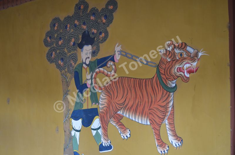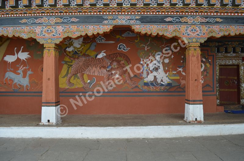 Înainte de a ajunge în Paro, am avut privilegiul să fotografiem, de la cațiva metri, după o ascensiune dificilă (dar de neuitat), celebrul „Tiger’s Nest”, în traducere „Cuibul Tigrului”, după cum este cunoscută Mănăstirea Taktshang Goemba, situată pe o stâncă la înălțimea de aproximativ 800 m deasupra văii. Legenda spune că, în secolul al VIII-lea, Guru Padmasambhava a zburat pe spatele unei tigroaice și, la o distanță de 3 ani, 3 luni, 3 săptămâni, 3 zile și 3 ore de meditație, într-o peșteră, a convertit întreaga vale Paro la buddhism; el este creditat cu introducerea buddhismului în această parte a lumii (reprezintă zeitatea tutelară a țării). Mai târziu, în secolul al XVII-lea, cel de-al patrulea lider temporal al Bhutanului, Tenzin Rabgye, a construit templul actual chiar pe locul unde Guru a meditat, numindu-l Taktsang. Templul este unul dintre cele mai sacre locuri de pelerinaj ale buddhiștilor din întreaga lume. A fost demolat, la propriu, de un cutremur – în anul 1998 – și reconstruit cu ajutorul guvernului din Bhutahn, donațiilor individuale, suportului financiar primit din partea altor țări.