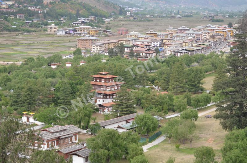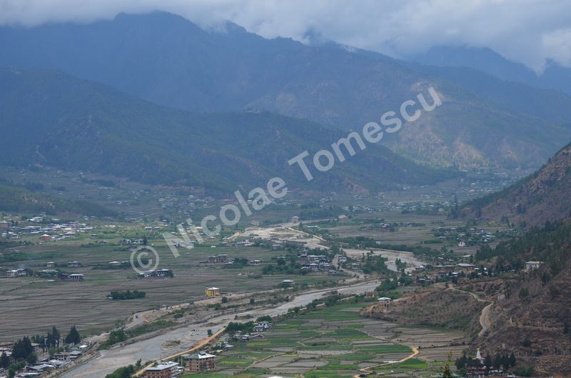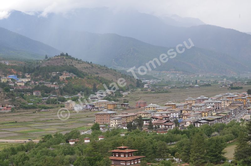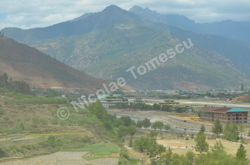 Survolînd, mai târziu, Valea Paro, am văzut meandrele râului argintiu Pa Chu, Dzong-ul Paro (dzong înseamnă fortăreață sau cetate) și turnul de observație Ta. După aterizarea pe aeroportul din Paro, cel de-al doilea oraș ca mărime din Bhutan, dar singurul înzestrat cu aeroport internațional, a urmat deplasarea prin fascinanta vale. La confluența râurilor Thimphu și Paro, am urcat și traversat un pasaj îngust, coborând apoi la Namseling, de unde ne-am îndreptat către Thimphu, capitala Bhutanului; ultima se evidențiază prin casele construite în stil tradițional bhutanez, cu un farmec special; odată ajunși în centru, iese în evidență mulțimea localnicilor din piața orașului, oameni îmbrăcați în costume tradiționale – care merg la treburile zilnice într-un mod liniștit, tipic bhutanez…