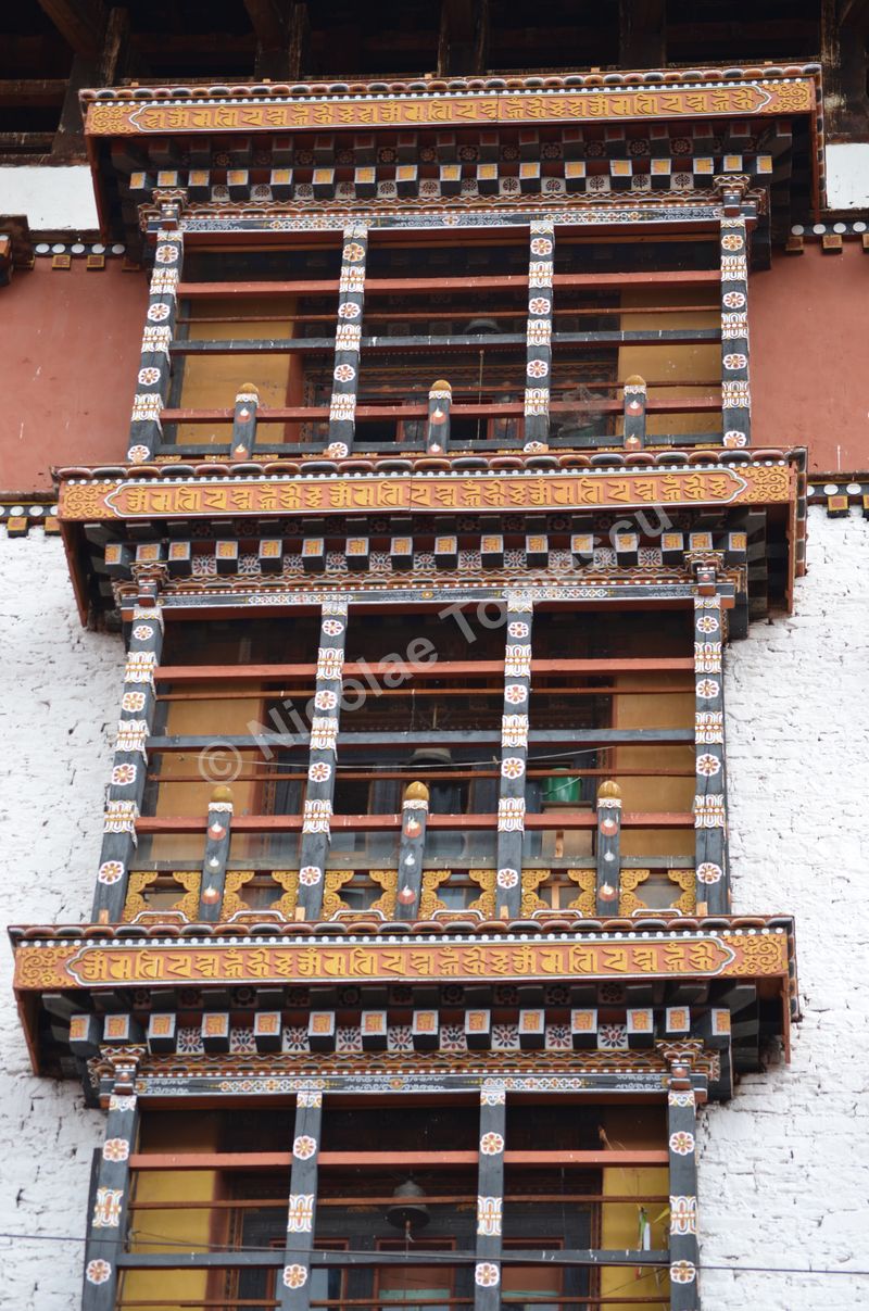 Am vizitat și cea mai impresionantă fortăreață, Punakha Dzong, construită strategic, la confluența râurilor Pho Chhu și Mo Chhu (1637). Fortăreața, loc de încoronare a regilor buthanezi, încă din anul 1907, a suferit – de-a lungul timpului – diferite incendii, cutremure, inundații cărora le-a rezistat eroic, jucînd un rol important în istoria Bhutanului, devenind centrul administrativ și religios al districtului Punakha, totodată reședința de iarnă a conducătorului lama din Bhutan. Una dintre atracțiile fortăreței este sistemul de 21 de temple care încântă prin armonia decorațiilor și a arhitecturii; arată ca un vas gigantic, cu lucrări rafinate în lemn și picturi detaliate. În Paro, am vizitat Ta Dzong, turnul de observație construit pentru apărarea Rimpung Dzong (în timpul războaielor interne din secolul al XVII-lea), care a devenit, din 1968, Muzeul Național Bhutanez, adăpostind o moștenire culturală de o valoare inestimabilă. Colecțiile muzeului includ picturi religioase – thanka, obiecte de artă care datează din secolul al VII-lea, stampe bhutaneze și o colecție de arme, respectiv de armuri. De aici, coborâm spre Rimpung Dzong, care controlează toate activitățile religioase și sociale din vale. Dzongul, construit ca o cetate, în anul 1646, de primul lider temporal și spiritual al Bhutanului, găzduiește corpul monastic din Paro, biroul șefului administrativ – Dzongda, inclusiv biroul judecătorului districtului Paro – Thrimpon. Tot aici am privit podul acoperit Nermi Zam…