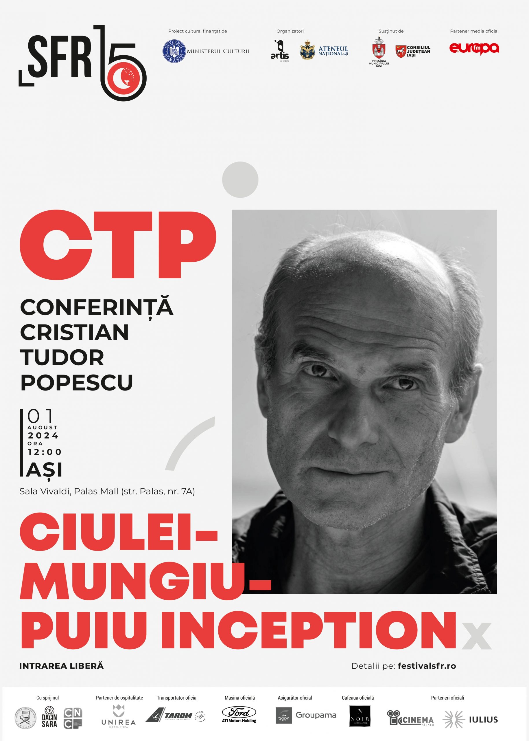 Conferință Cristian Tudor Popescu – CIULEI-MUNGIU-PUIU INCEPTION | Joi, 1 august 2024, ora 12.00, Sala Vivaldi, Palas Mall, Iasi