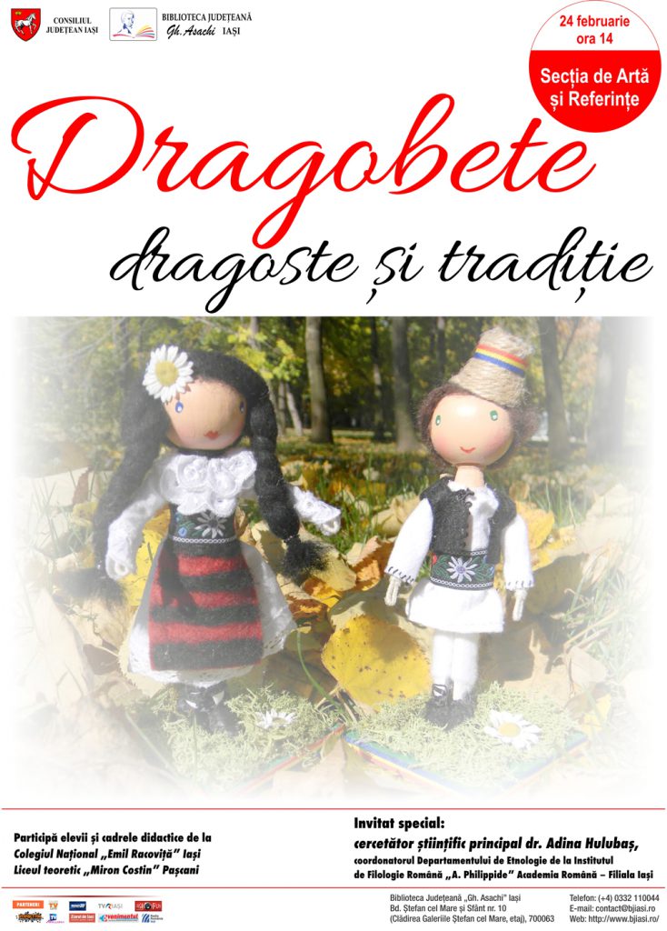 Manifestările prilejuite de Sărbătoarea Dragobetelui se desfășoară în cadrul proiectului „Carte și tradiție românească” al Bibliotecii Județene Iași, care are ca scop cunoașterea, cultivarea și prezervarea tradițiilor românești, cu precădere a celor din zona Moldovei.