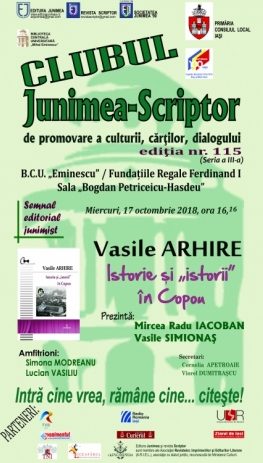 Clubul Junimea Scriptor invită publicul ieşean la lansarea volumului „Istorie şi istorii în Copou”, semnat de cunoscutul jurnalist Vasile Arhire.