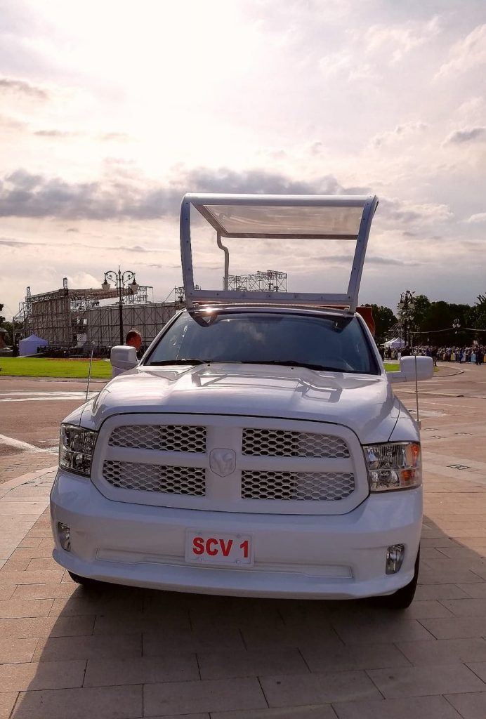 Papamobilul românesc, conceput la uzina „Dacia”, este folosit sâmbătă 1 iunie 2019 cu prilejul vizitei Papei Francisc la Miercurea-Ciuc. În București, Papa Francisc a fost transportat cu o „Dacia Logan” și un papamobil „Isuzu”…