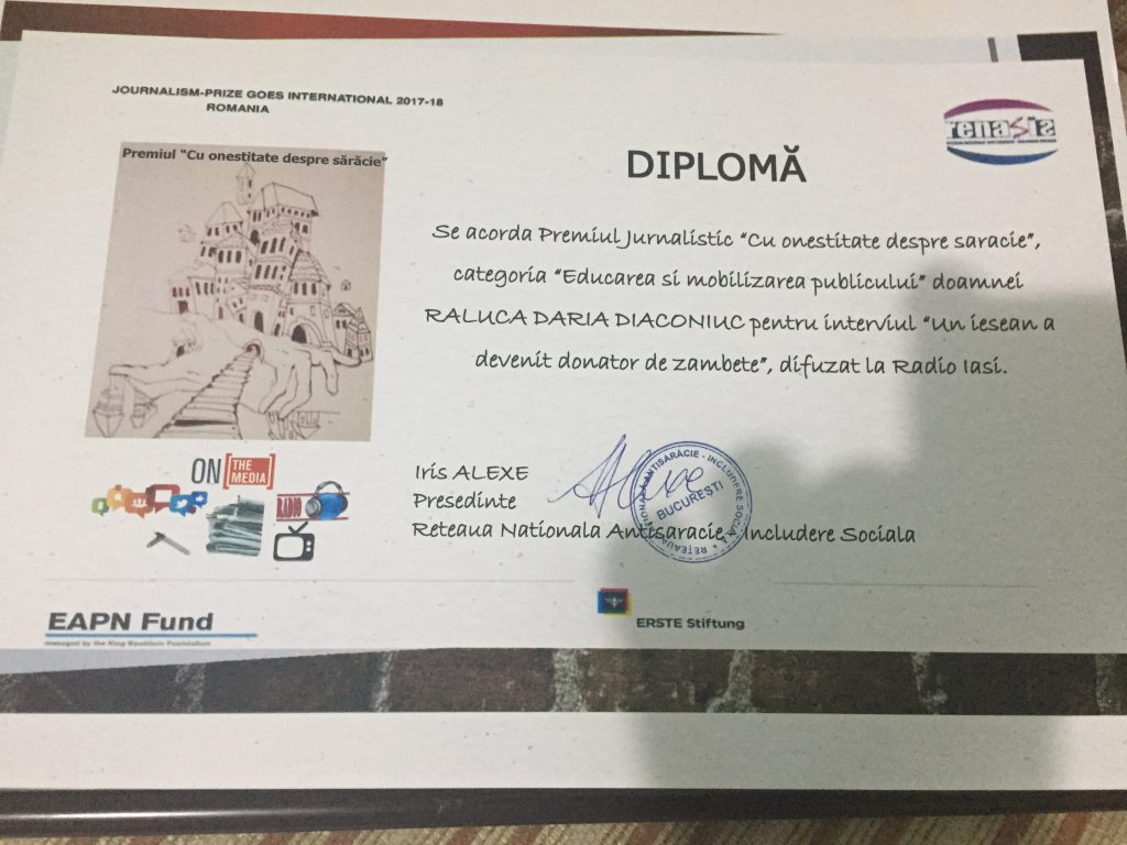 Raluca Daria Diaconiuc-premiu radio „Cu onestitate despre sărăcie”