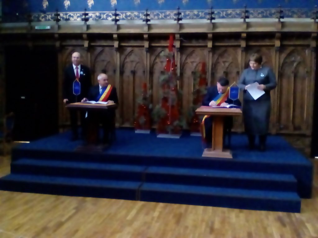 Astăzi, la Iaşi, au fost semnate acordurile de înfrăţire şi colaborare între 16 primării din județul Iași și 16 administraţii locale din raionul Ungheni, Republica Moldova.