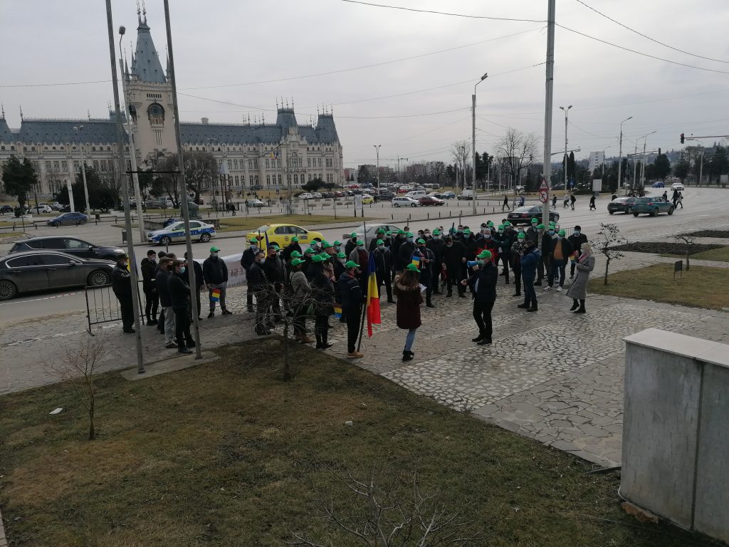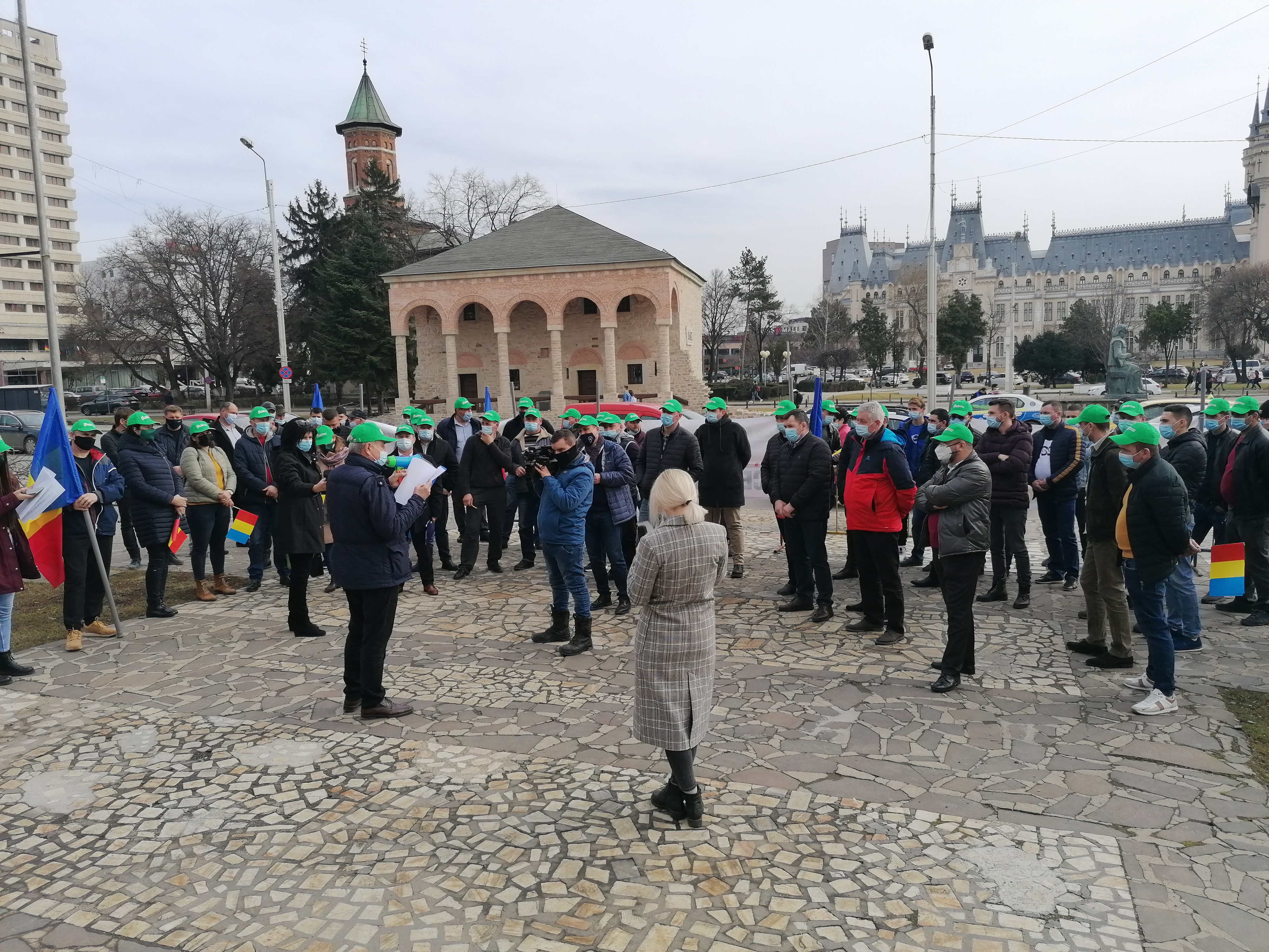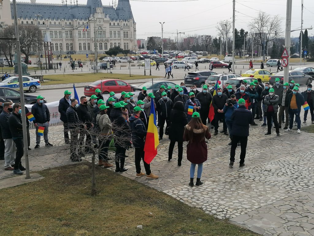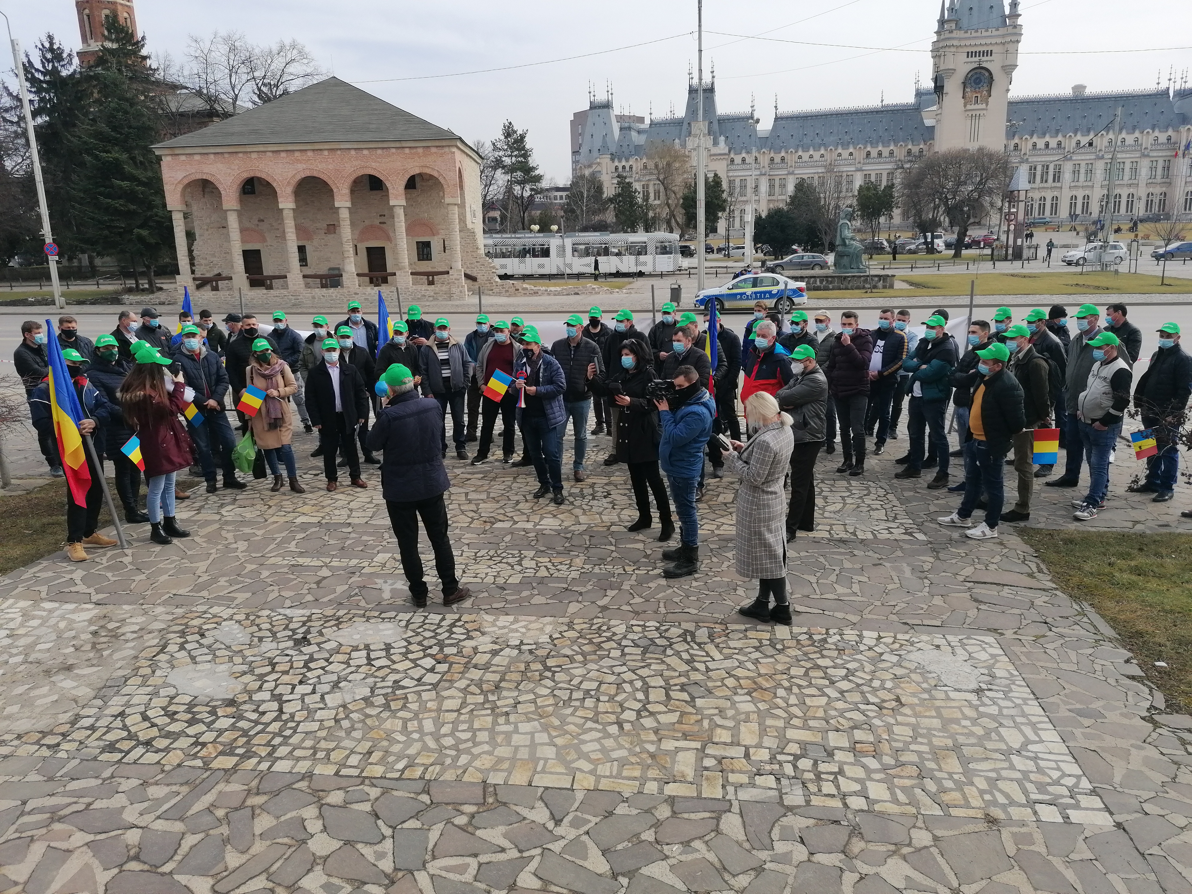 Aproximativ 100 de agricultori din județele Iași, Botoșani și Vaslui au pichetat astăzi, timp de două ore, sediul prefecturii Iași.