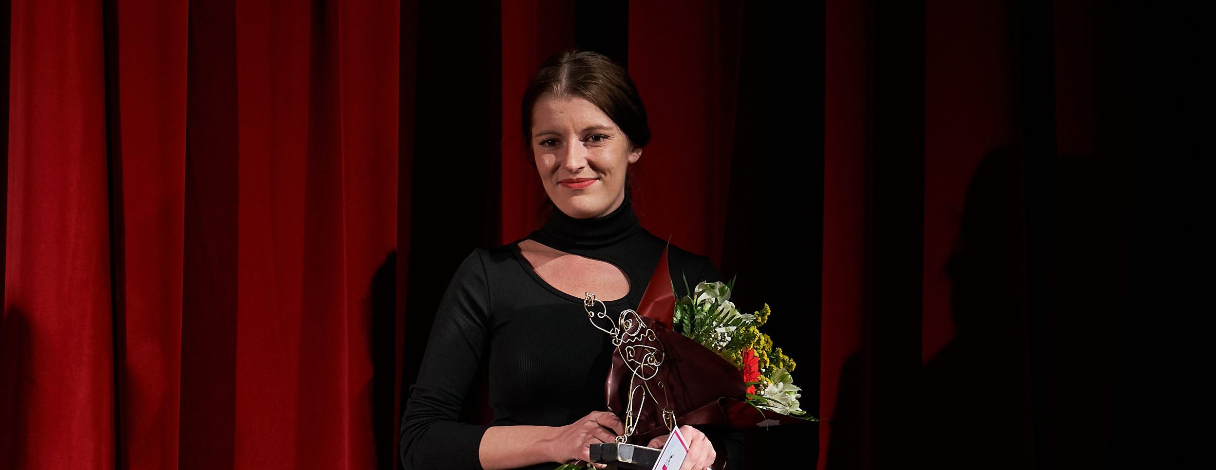 Petronela Buda este actriță a Teatrului Dramatic „Fani Tardini” din Galați și a prezentat în concurs spectacolul „Ușa e deschisă”, regia Vlad Matei Ajder, scenografia: Daniel Divrician. Pe lângă trofeu, premiul pe care aceasta îl va primi este în valoare de 3.000 de euro.
