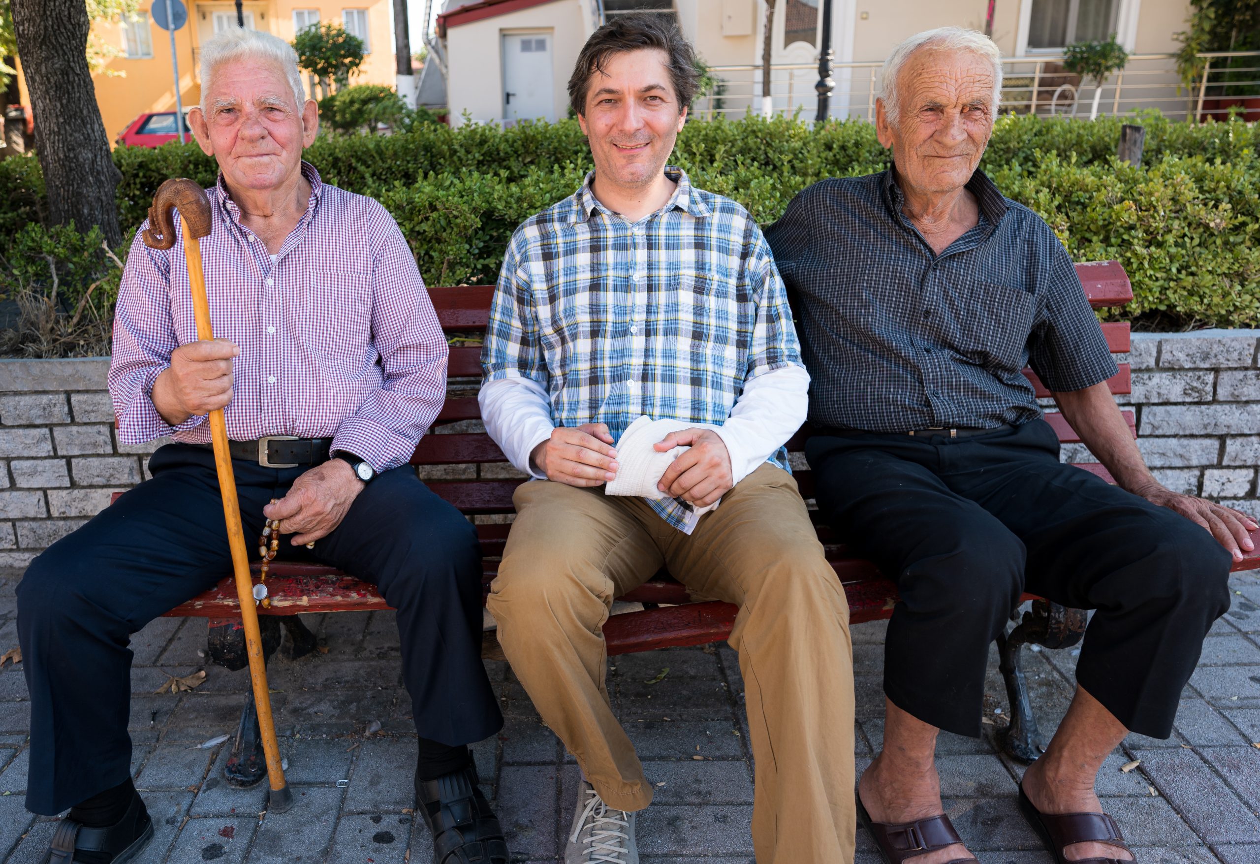Se mai adaugă un interlocutor, care întreabă dacă în România noi înțelegem schip, limba din Arbania… adică limba albaneză… Le explicăm că noi nu vorbim nici albaneza, nici helenica, ci vlaha. Descoperim apoi că numărăm la fel… Și le propunem să facem o fotografie, la despărțire! Iar în poză trebuie neapărat să apară și cârligul, toiagul specific ciobanilor aromâni!…