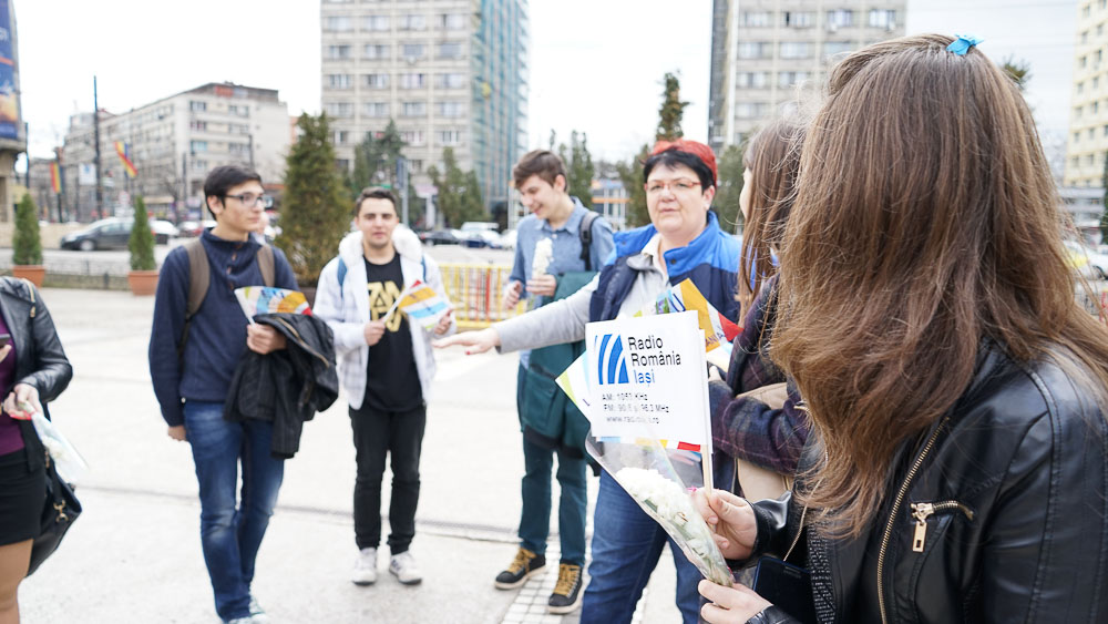 Echipa Radio Iași a profitat de vremea frumoasă de afară și a oferit flori, stegulețe, gânduri și urări frumoase doamnelor și domnișoarelor.