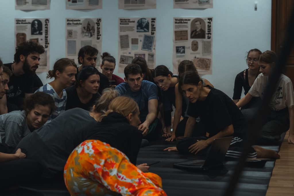 Lorette Enache: Partenerii noștri de la Casa Muzeelor cărora le mulțumesc, respectiv, doamnei Nicoleta Dabija, ca și în anul trecut, la masterclass-ul suținut de Guillaume Siard, ne-a oferit sala de conferințe care a devenit sală de dans pentru câteva zile pe parcursul masterclass-ului și, într-adevăr, sala este înțesată de privitori, de interpreți, de cursanți, de profesori. Vreau să cred că, pe viitor, vom găsi împreună, în sfârșit, o posibilitate de a obține un spațiu în care dansul să se regăsească într-o dimensiune normală, de cercetare și explorare.
