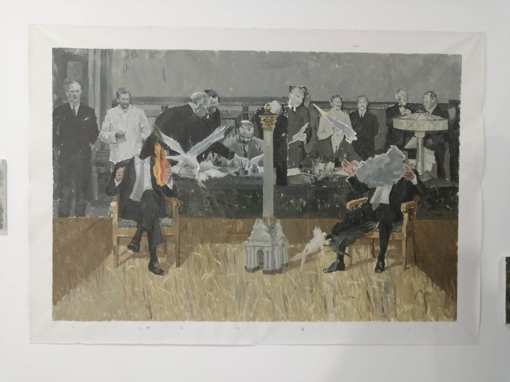 Cristian Nae: Este un proiect de cercetare, de investigare a imaginilor care circulă pe canalele social media, dar și a imaginilor care sunt vehiculate în mass-media care, știm foarte bine, la rândul său că este segregată: unele dintre canalele respective sprijină un anumit tip de narațiune, în particular despre războiul din Ucraina, dar nu numai; altele propun o altă interpretare a acelor evenimente. Și se poate ajunge la situație în care aceeași imagine este oferită drept evidență sau drept mărturie pentru un fapt istoric resemnificat sau reinterpretat în funcție de tipul de comentariu pe care îl găsim atunci când lecturăm respectiva imagine. În momentul în care un pictor își propune să construiască o narațiune despre istorie și mai ales despre istoria în desfășurare, el este constrâns să interogheze sursa imaginilor respective, veridicitatea lor și, făcând acest lucru, el este cumva în siajul unui reporter, unui jurnalist de investigație. Sigur, este o parte a unei cercetări artistice care nu își propune să înlocuiască și nici nu va putea înlocui, ci dimpotrivă, să complexifice o cercetare de tip jurnalistic, pentru că el nu-și propune să decidă care este adevărul despre un fapt istoric sau imaginea care chiar este adevărată și care fake news sau e manipulată, ci mai curând să stârnească publicului acest tip de scepticism, să ne facă conștienți că atunci când privim imagini, când ascultăm narațiuni, ele pot să aibă un soi de ideologie latentă și mai cu seamă să ne facă conștienți că și ele pot emoționa, ca și arta. Mi se pare că sarcina unui pictor care își asumă un proiect atât de complex și de dificil precum acela de a nara situații, procese de transformare istorică este un demers care în cele din urmă rămâne și un demers subiectiv. O cercetare artistică de acest gen devine complementară a ceea ce putem să întâlnim pe mass-media, fără, repet, să aibă pretenția de a rezolva vreo problemă istorică sau de a depozita vreun adevăr, ci mai curând de a ne emoționa și de a integra aceste narațiuni subiective și aceste complexe procese de rememorare în viața noastră.