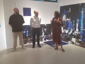 George Pleșu: Mi-e foarte greu să vorbesc așa la modul general, însă, așa cum cei care au venit și vor veni să vadă expoziția care e deschisă până pe 25 august au ocazia să vadă, lucrările selectate arată o maturitate și o abordare foarte proaspătă și sunt încântat de ce am putut selecta și anul acesta. E deja a șaptea ediție când facem această selecție a celor mai bune lucrări și, în general, văd că sunt cam două zone în care se duc absolvenții, ori spre o descriere sau niște comentarii asupra realității, adică undeva în exterior, ori o parte din ei privesc în interior și își explorează subconștientul, visele, anumite trăiri și au niște lucrări mai interiorizate care ar putea f i realizate orice s-ar întâmpla cu lumea din jur. Să nu uităm că ciclul acesta de absolvenți din ultimii 3 ani de licență sau 2 ani de master au trecut printr-o perioadă extrem de solicitantă și provocatoare, și cu învățământ online, și cu pandemia, războiul din Ucraina, criza economică care se prefigurează. În mod cert, e clar că ei vor fi marcați de ceea ce s-a întâmplat. Și da, poate o parte din aceste evenimente transpar și în lucrări, dar important e ca lucrările să fie interesante și să rămână valoroase, indiferent de ceea ce se întâmplă în jur. Și din punctul ăsta de vedere, cred că e o promoție bună.
