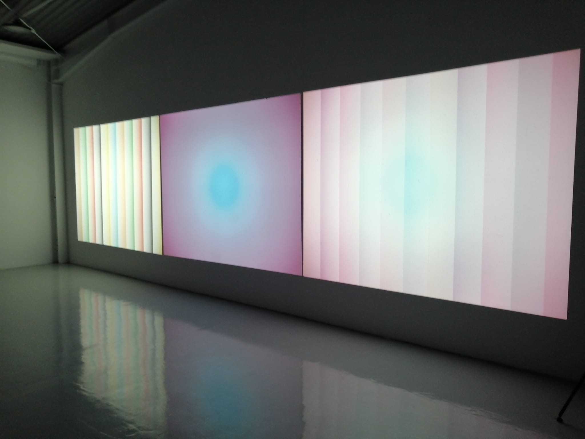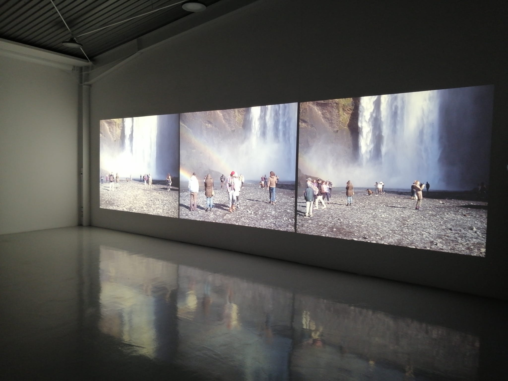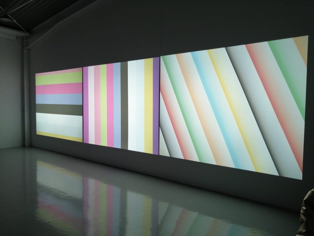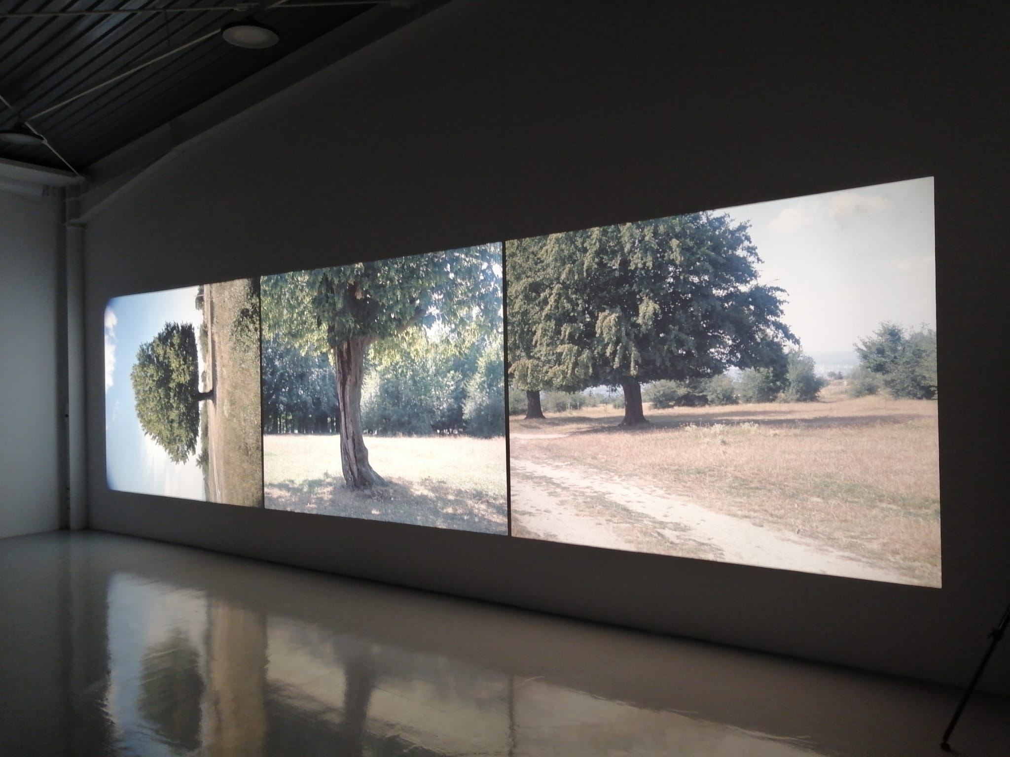 Matei Bejenaru: Așa cum am spus și la deschidere, trei ecrane pentru că am trei aparate, o dată. Un al doilea lucru, cu cât ai mai multe ecrane, cu atâta amplifici experiența senzorială și vizuală. Și atunci, pentru mine este important ca spectatorul să aibă acest sentiment de imersiune în spațiu vizual al imaginii, să fie cufundat acolo, în acel acvariu vizual. Și atunci, când ai trei ecrane, într-adevăr, îți captează foarte mult din câmpul vizual și ești proiectat în acel spațiu vizual al imaginii.