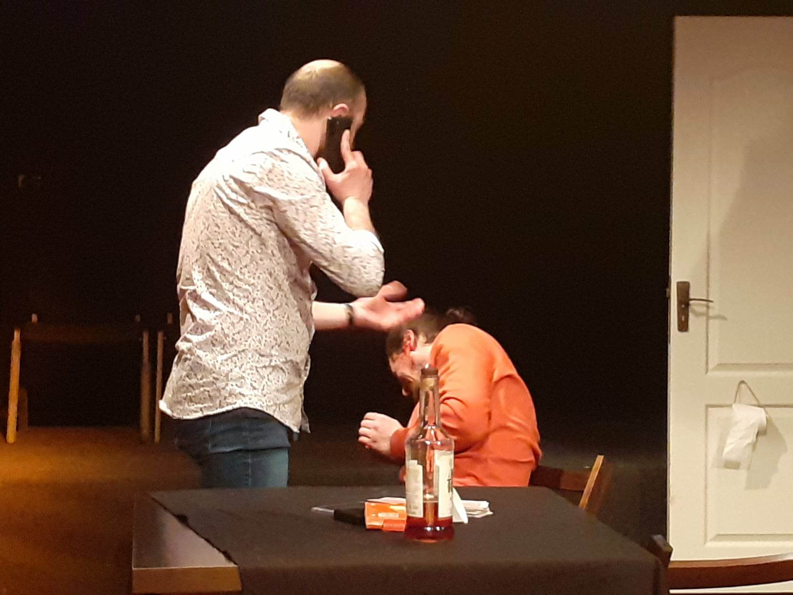 Vlad Cepoi: Asta m-a și atras la text, că în aparență este un text facil, o comedie cu niște oameni ridicoli. Dar, am săpat mai adânc și din ridicoli, i-am găsit aproape cehovieni, un fel de “oameni de prisos” care nu-și găsesc locul și a căror viață e haos și de aceea se și termină spectacolul într-un haos. Textul este foarte bine scris. La prima lectură m-am întrebat dacă am ales bine. După ce am lucrat cu băieții, chiar am avut o perioadă de două săptămâni, aproape trei, în care am lucrat la masă doar, și am discutat pe text și ne-am dat seama că până și un “nu” sau un “da” contează foarte mult în textul ăsta.