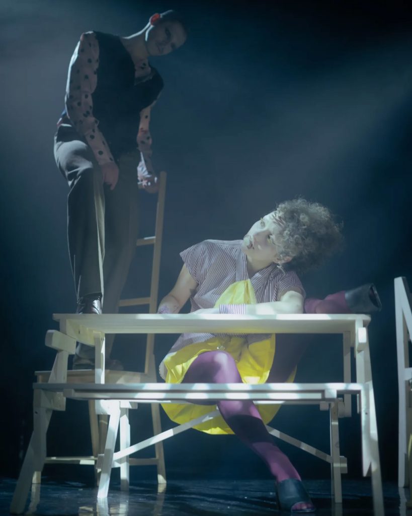Miriam Engel: Bună întrebare! Adică… cred că, în ziua de azi, deși nu e chiar ceva nou, totul se amestecă. Se vede clar că au abilități de dans contemporan și tehnici specifice, își utilizează corpurile într-un mod în care actorii de teatru clasic, de exemplu, nu o pot face. Dar, în același timp, împrumută și gesturi, și decoruri din teatru, ba chiar merg spre zona absurdului, și mie îmi place asta! Adică, exact asta facem și noi în dansul contemporan: combinăm tot felul de tehnici, nu ne ținem strict de o singură direcție, ci ne permitem să ne jucăm cu mai multe. Bineînțeles, asta înseamnă că trebuie să ai și suficientă cunoaștere, ca să faci lucrurile cu cap, nu doar să iasă ceva… trăznit.