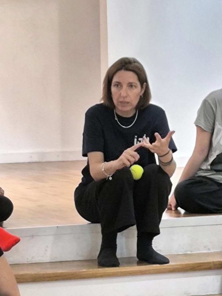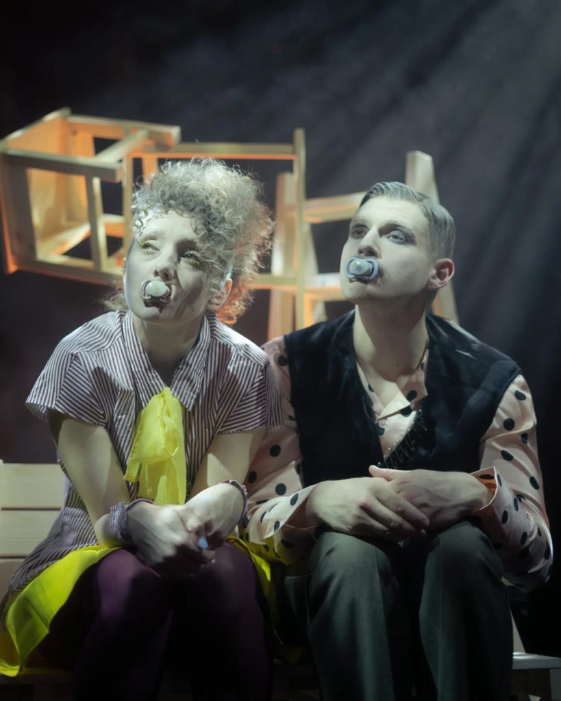 Miriam Engel: În primul rând, mi-a făcut mare plăcere să-i urmăresc pe tinerii coregrafi și artiști. Mi-a plăcut cum au lucrat textul și cum l-au transpus într-o abordare foarte ambițioasă de teatru absurd, folosindu-și și corpurile în dans. Mi s-a părut un gest curajos să se arunce într-un astfel de demers și e frumos să vezi talentul și felul în care Lorette, se vede clar, le oferă multă libertate, îi încurajează să exploreze și să își depășească limitele. Și, cum le-am spus și artiștilor, m-am bucurat să aud că e un „work in progress”, pentru că da, se simte clar o evoluție — ceea ce e o veste bună. Chiar sunt curioasă să văd cum va arăta totul la final.