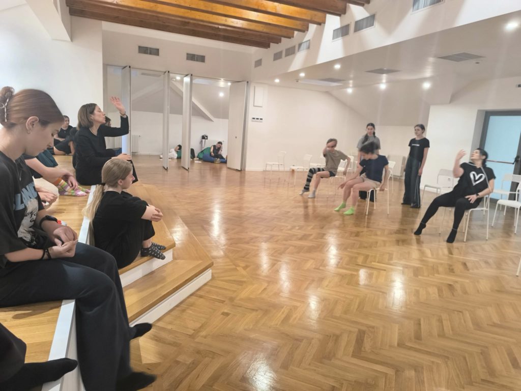 Valentina Temussi: „Take a Seat” e chiar interesant, atât ca dramaturgie, cât și fizic. E un „work in progress”, desigur, mai are de crescut, dar deja se simte clar esența teatrului absurd transpusă într-o piesă de mișcare. Și esența asta are legătură cu imposibilitatea de a comunica și cum, de fapt, imposibilitatea asta devine adesea felul în care trăim, felul în care ne raportăm la ceilalți. Pretindem că suntem acolo, că suntem împreună, dar de fapt, nu suntem. Și cum, cu timpul, lucrul ăsta se adâncește, dar noi nu-l recunoaștem niciodată. Îmbătrânim așa, blocați în aceleași tipare. Iar momentele de nebunie sunt, poate, singurele în care suntem cu adevărat sinceri cu noi înșine, ne permitem, în sfârșit, să fim reali în toată nebunia aia. Și-apoi… nu mai suntem. Când intră în joc relația cu ceilalți, când avem și dans, și teatru, în același timp, de multe ori, ne pierdem. Cred că putem spune că e mai degrabă o piesă de dans contemporan, pentru că mișcarea are o calitate foarte clară, foarte specifică și bine conturată. Nu este chiar teatru-dans, poate și pentru că pornește de la un text absurd. Iar un text absurd, prin definiție, nu mai e chiar teatru clasic. Și-atunci, să-l transformi în mișcare și să-l numești teatru-dans sau dans-teatru aproape că sună contradictoriu. Dar, cred că cei din echipă au folosit bine ambele forme artistice: și teatrul, și dansul.