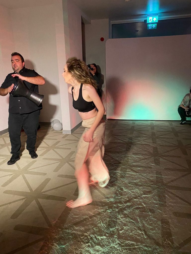 Pe ritmurile instrumentelor de percuție, muzica și dansul ne-au purtat într-o călătorie prin lume. Performerii au impresionat prin imaginație și expresivitate corporală. Interacțiunea a fost permanentă între performeri, între aceștia și muzicieni.