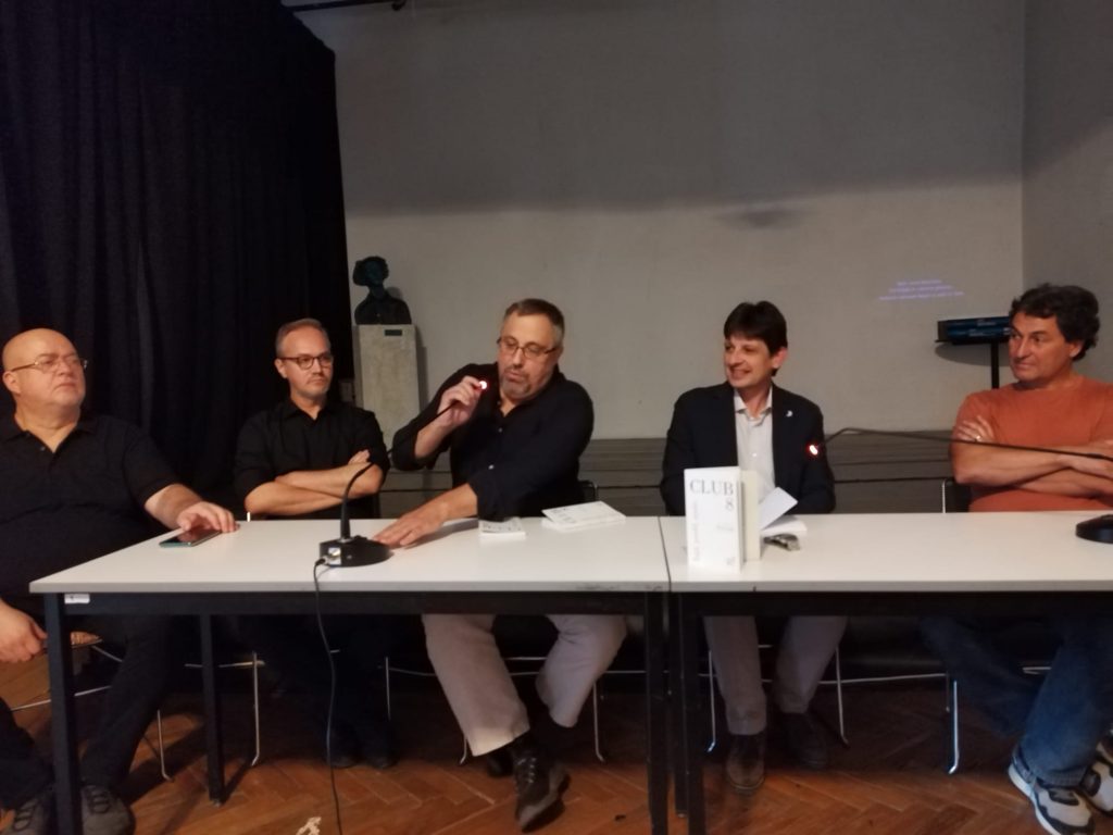 Dan Lungu: Era mai multe cercuri. Inițial am pornit de la mine, cu Viorel Ilișoi, cu Ovidiu Nimigean, Radu Andriescu, Horațiu Decuble, Constantin Acozmei, Otilia Vieru, Daniela Visternicu, Florin Lăzărescu, Lucian Dan Teodorovici, Dan Sociu și s-au adunat în cercuri tot mai largi și după aceea, mai erau suporteri, simpatizanți ai Clubului. Au gravitat foarte mulți tineri în jur pentru că era, până la urmă, o stare de spirit și nu neapărat numai literați, erau și din zona artelor vizuale, din zona teatrului, din zona muzicii, cei care veneau prin jurul Clubului 8. Dar ăsta era nucleul de bază și în cărticica asta pe care am scos-o acum, „Club 8 – față, profil, spate”, e o carte mai degrabă de documente și câteva intervenții memorialistice ale mele, e o carte apărută la Muzeul Național al Literaturii României din București, care a vrut cumva să marcheze, la 25 de ani de la apariția Clubului, să marcheze momentul și să dea materie primă istoricilor literari.
